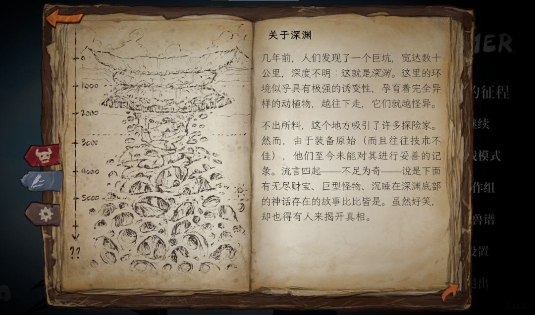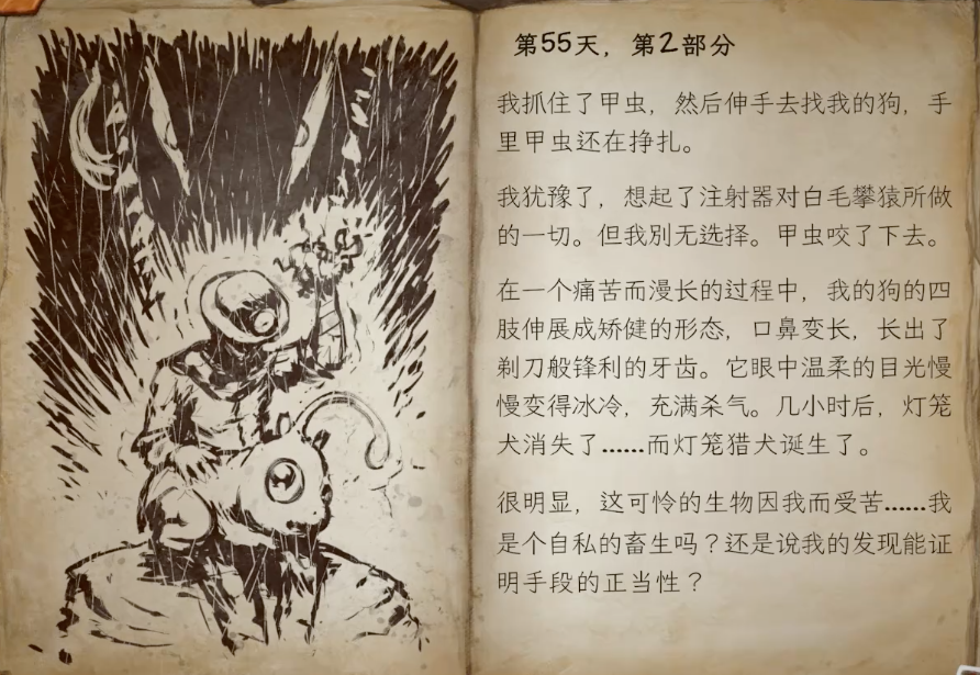 每抓到一种怪物,图鉴里都会出现新的研究手稿,每通过一段流程,主角的日记也会解锁新的篇章。文本并不算多,但是氛围塑造得相当不错,内容会从最初的好奇,逐渐转向对深渊失控力量的畏惧,再到精神状态的微妙改变……