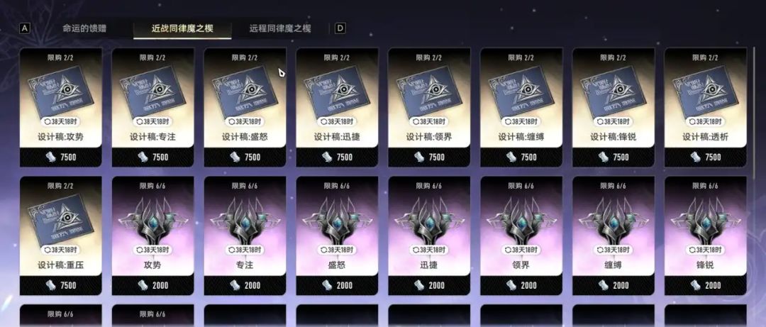 肉鸽模式的商店里包含了目前全部同律武器的魔之楔。对于使用同律武器的角色如赛琪,琳恩这种是必须刷的,好在需求量不高,刷一套就够用。除此之外命运的馈赠里也包含一部分改变近战武器模组的魔之楔。