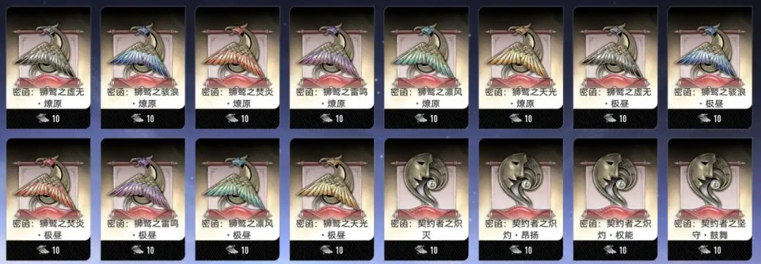 综合来说,考虑到游戏最后需要你有2个能打的主战,你最好只集中刷一个人的金魔之楔,另一个人全用紫色的即可。除角色魔之楔外,武器魔之楔密函均产出自夜航的Lv70和80,不过重要性相对不高。同律武器的密函均产出自迷津