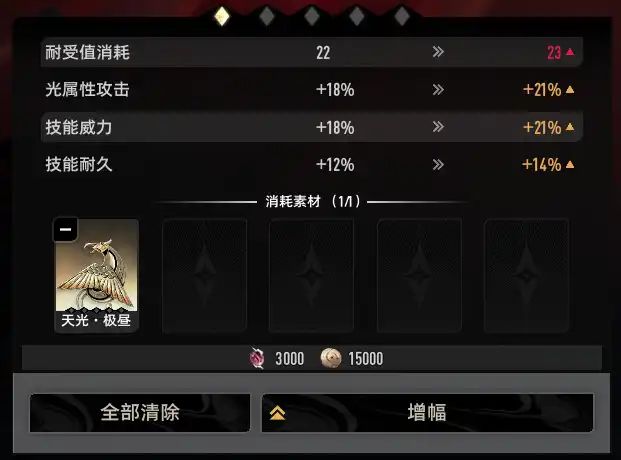 金色魔之楔增幅:除了基本的升级外,还可以通过消耗同名的魔之楔进行增幅,最多5次。