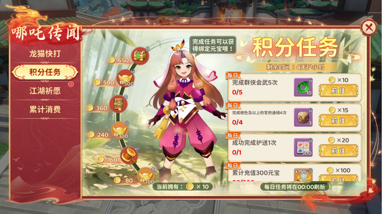 完成每日任务,即可轻松赢取丰厚积分,绑定元宝以及多种珍稀道具统统收入囊中。任务简单、奖励丰富,天天都有惊喜,助你实力飞跃、福利拿到手软。