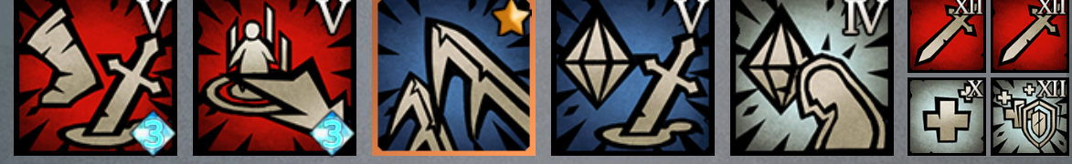 屠掠战意/旋转之翼-翼骑兵/嗜血/信仰唤醒-主教/复仇-翼骑兵/自愈-魔弓手or统御骑士/充能-盾勇