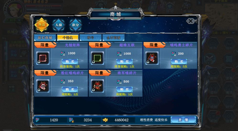 还可以参加限时特惠和在商城中直接用晶石进行购买,每周有限购次数,记得做好规划