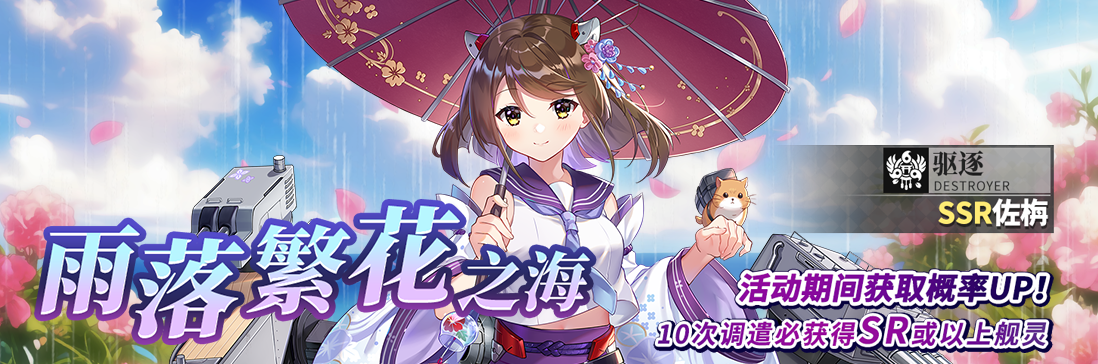 指挥官可通过「紧急调遣证」在「雨落繁花之海」活动调遣中获取限定SSR舰灵「佐栴」,且该角色的获取概率将在活动期间大幅提升!具体概率将在游戏内公示。