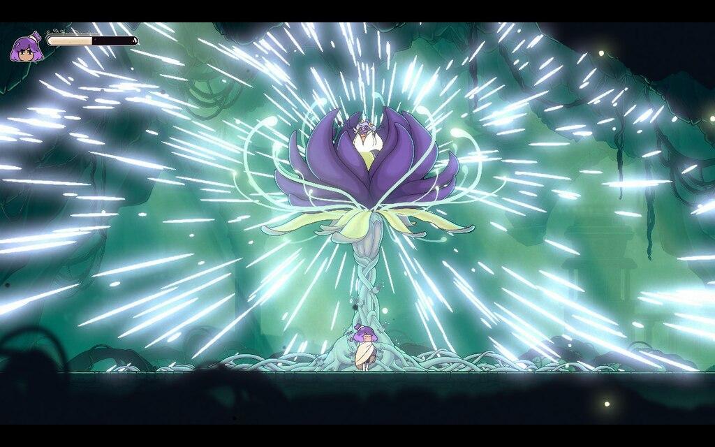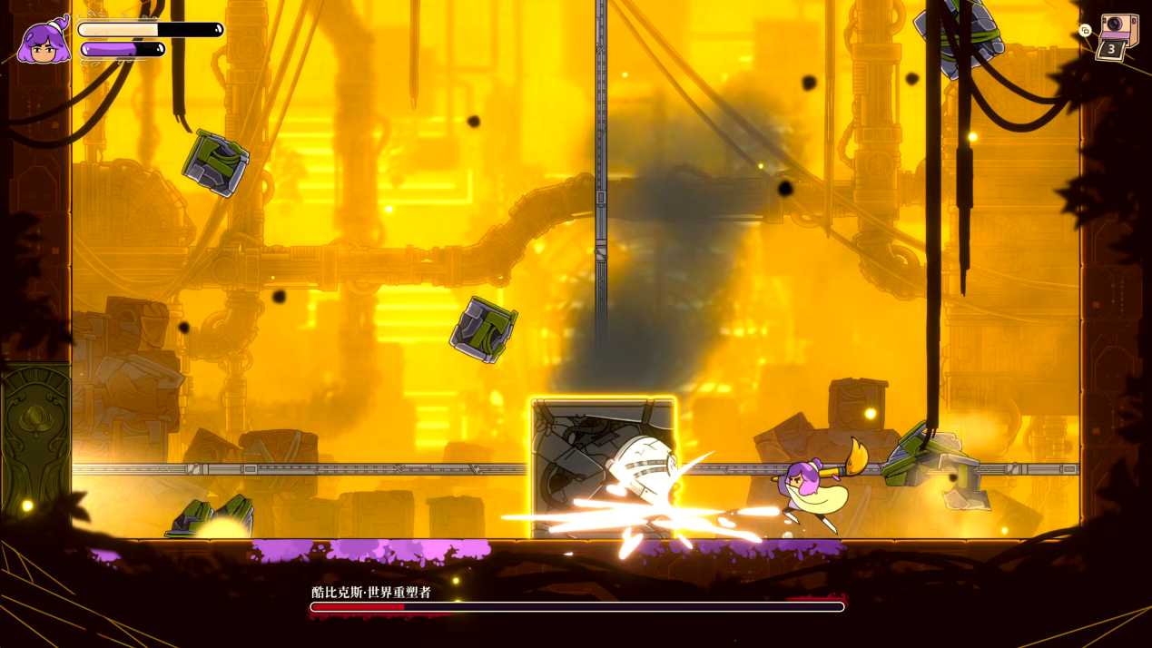 每个区域之间的段落也有一定的立体感,在固定的节点间隔之间会有战斗与BOSS房间,偶尔夹杂一点轻解谜,结合本作丝滑的手绘特效与UI,在跑图方面给人的整体感受还是比较流畅的。不过在游戏中后期,各种需要按键组合、连续长桥段的跳跳乐还是让人有点吃不消,对喜欢跑酷、速通、快节奏的玩家来说这或许值得挑战,但其他玩家最好还是得有一定的心理预期,慢下来欣赏游戏的美术也不失为一种选择。