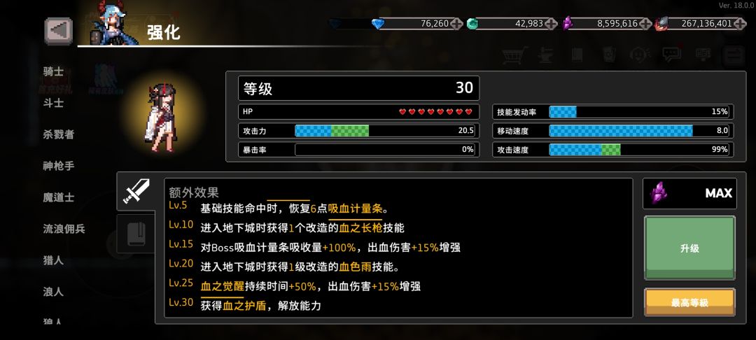 吸血鬼应该是目前最适合新手的角色了,比骑士都适合,开局就12血的高容错,平a回血,自动回血,可以说只要你不去送死,基本上很难死掉,一开局就能打出2万伤害(暴击2万,没暴击也就1万2左右)三体人!
