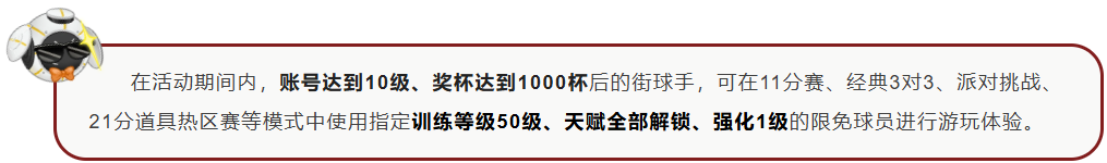 另外,在派对狂欢节活动中累计获得300欢乐积分就能得到狂欢节巨星自选箱啦,还在纠结兑换哪一位球员的街球手,也能通过这几轮的巨星限免体验活动来找到更适合自己的球星哦~