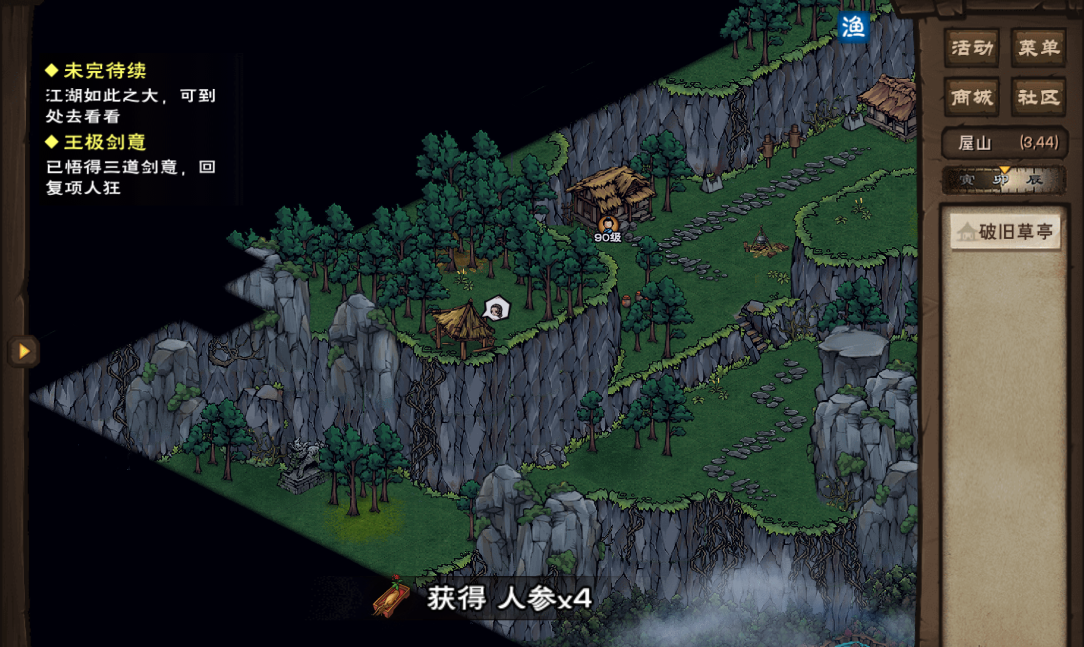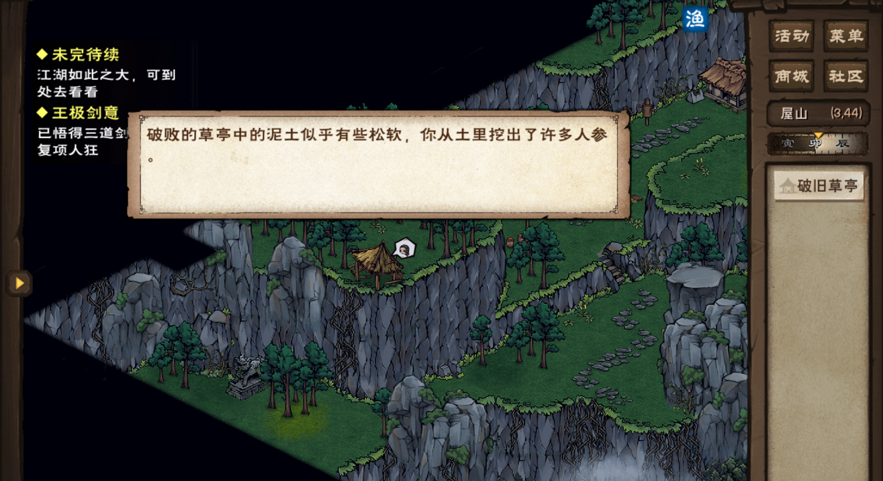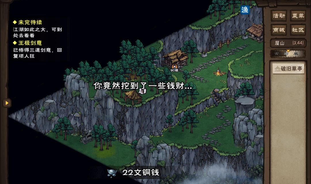 如图,剑王阁这里,能挖4个人参,再挖是22文……