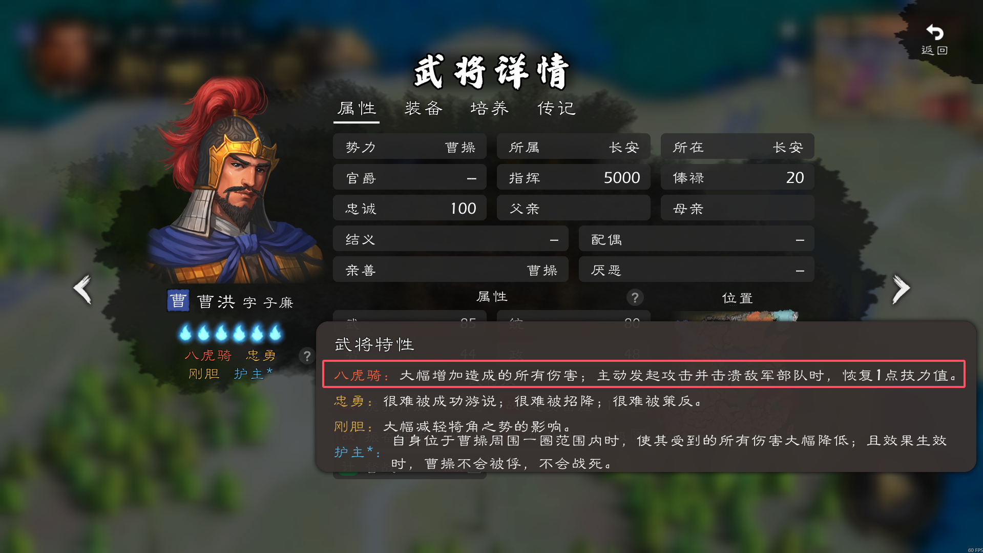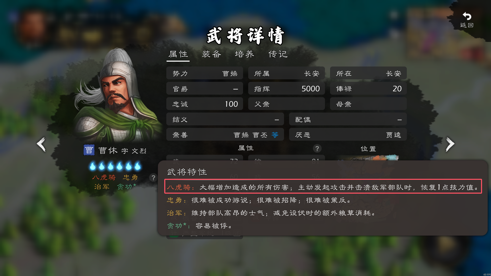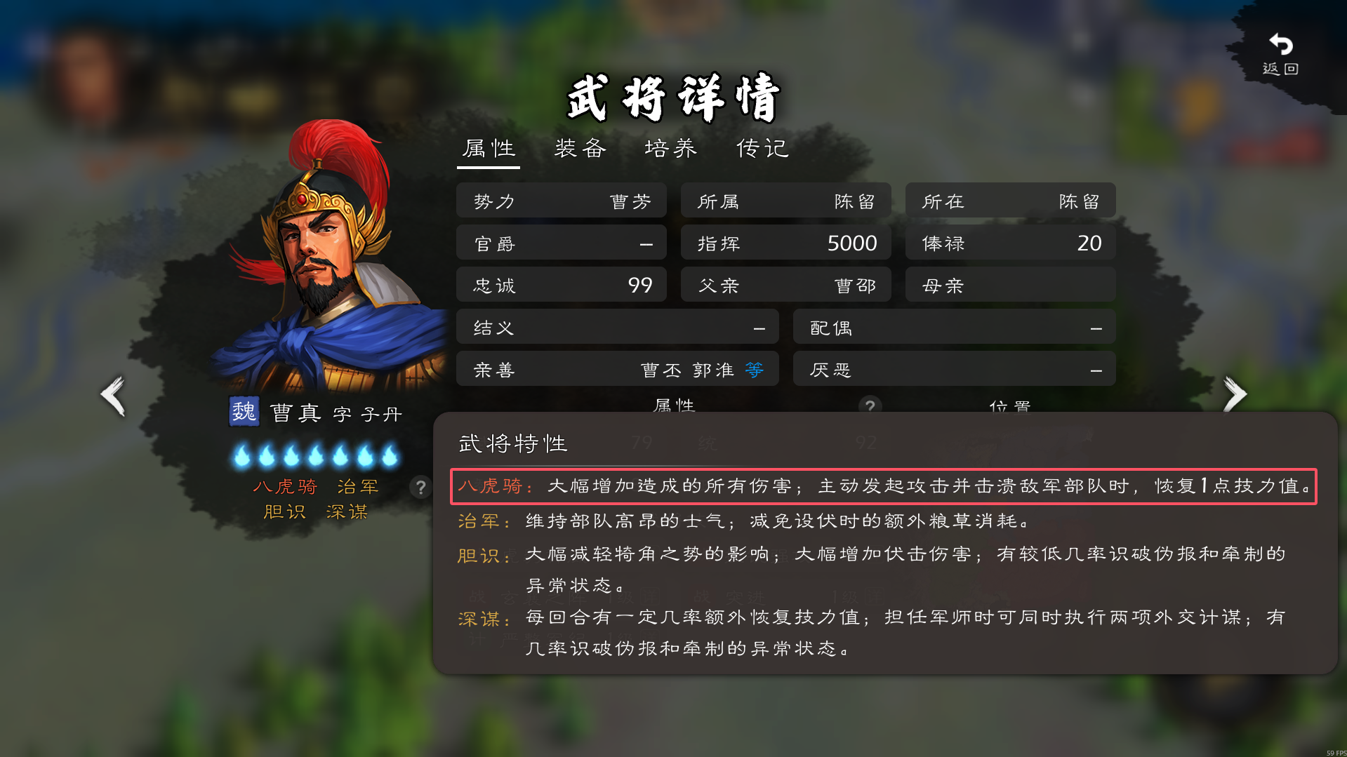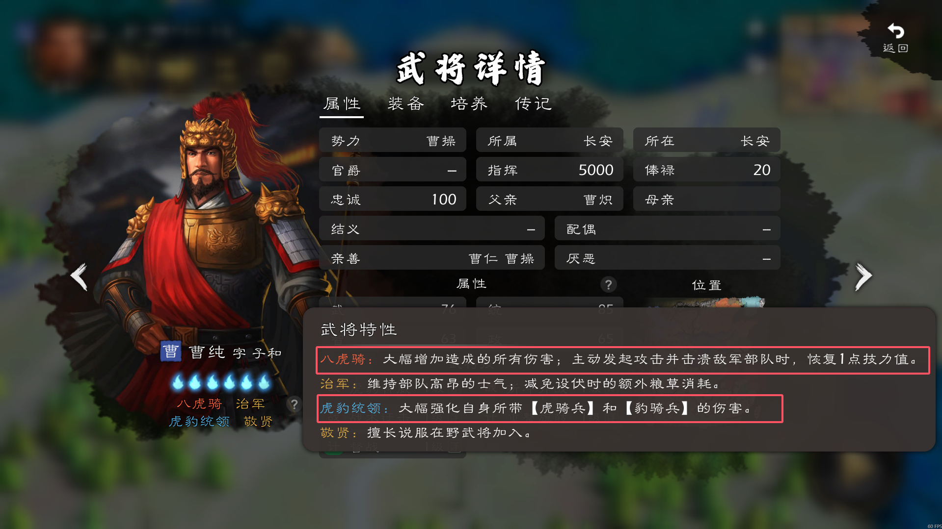 5.曹纯:增加特性【八虎骑】(红)新增特性【虎豹统领】(蓝);