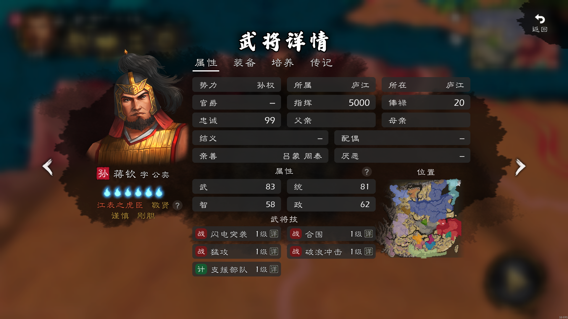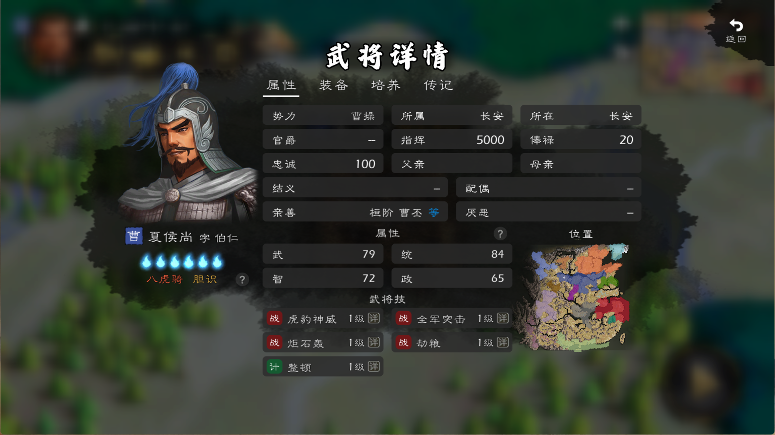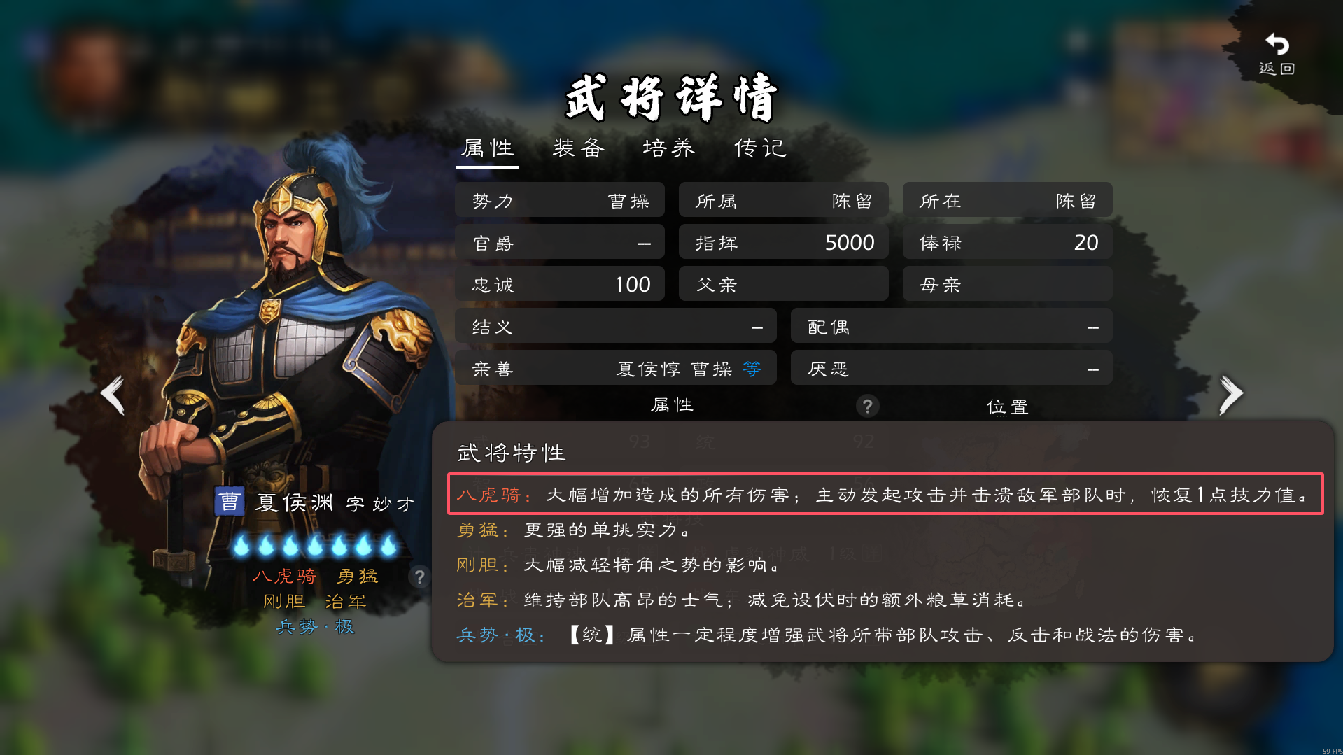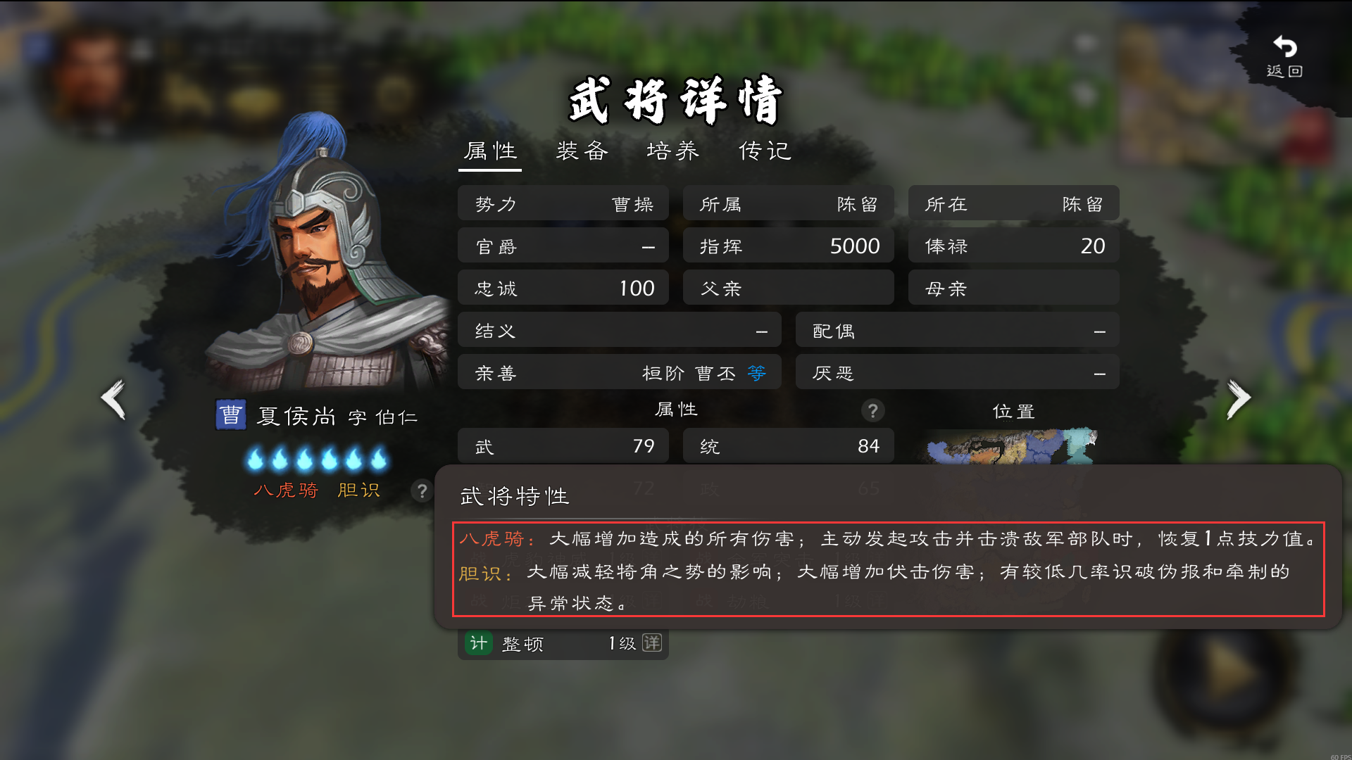 3夏侯尚:增加特性【八虎骑】(红);新增特性【胆识】(黄);调整四维属性;
