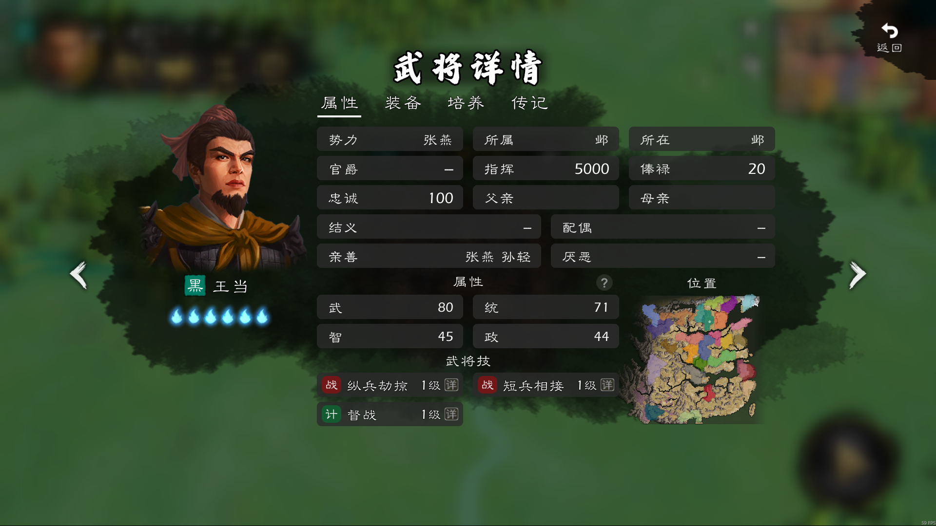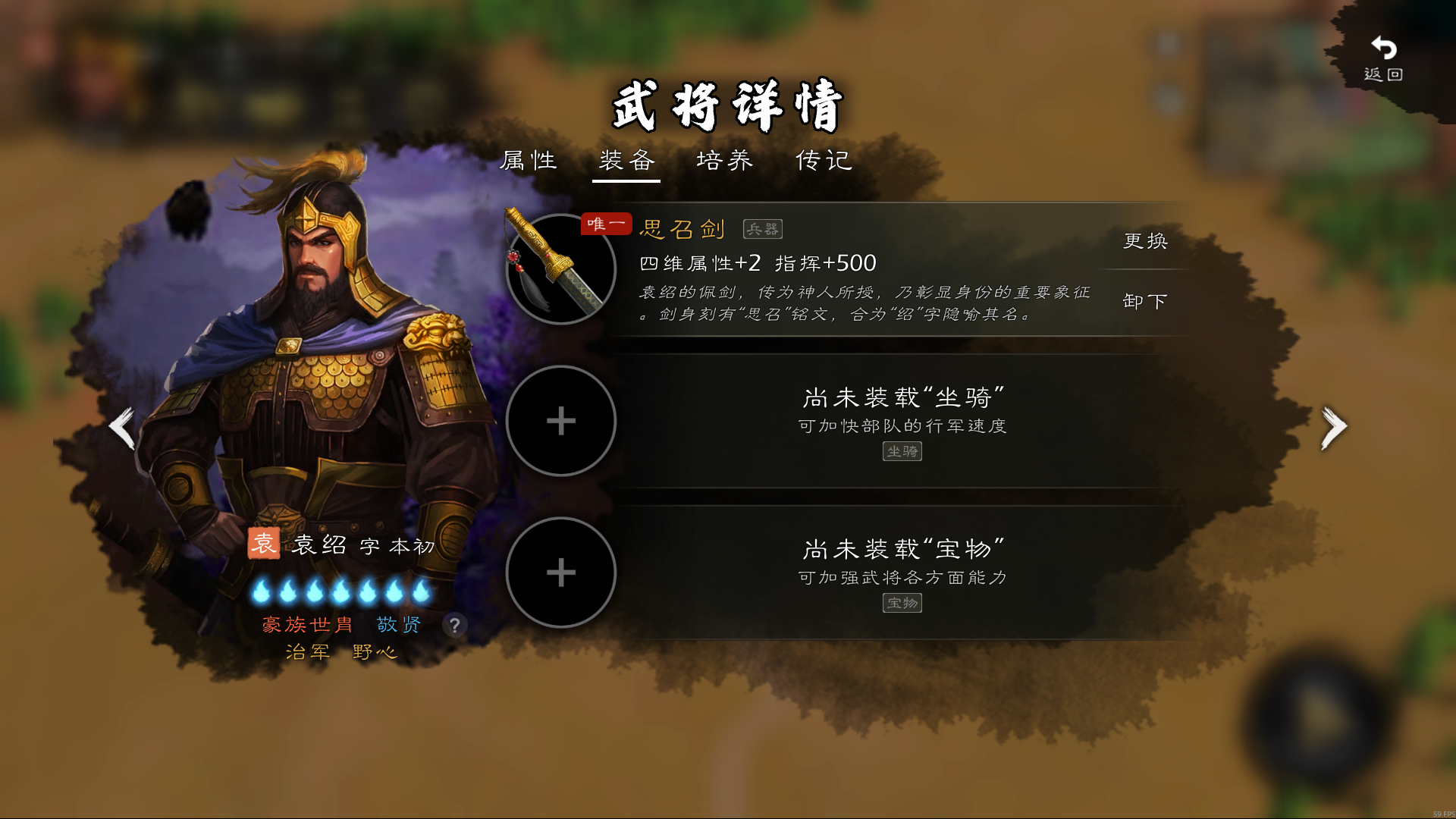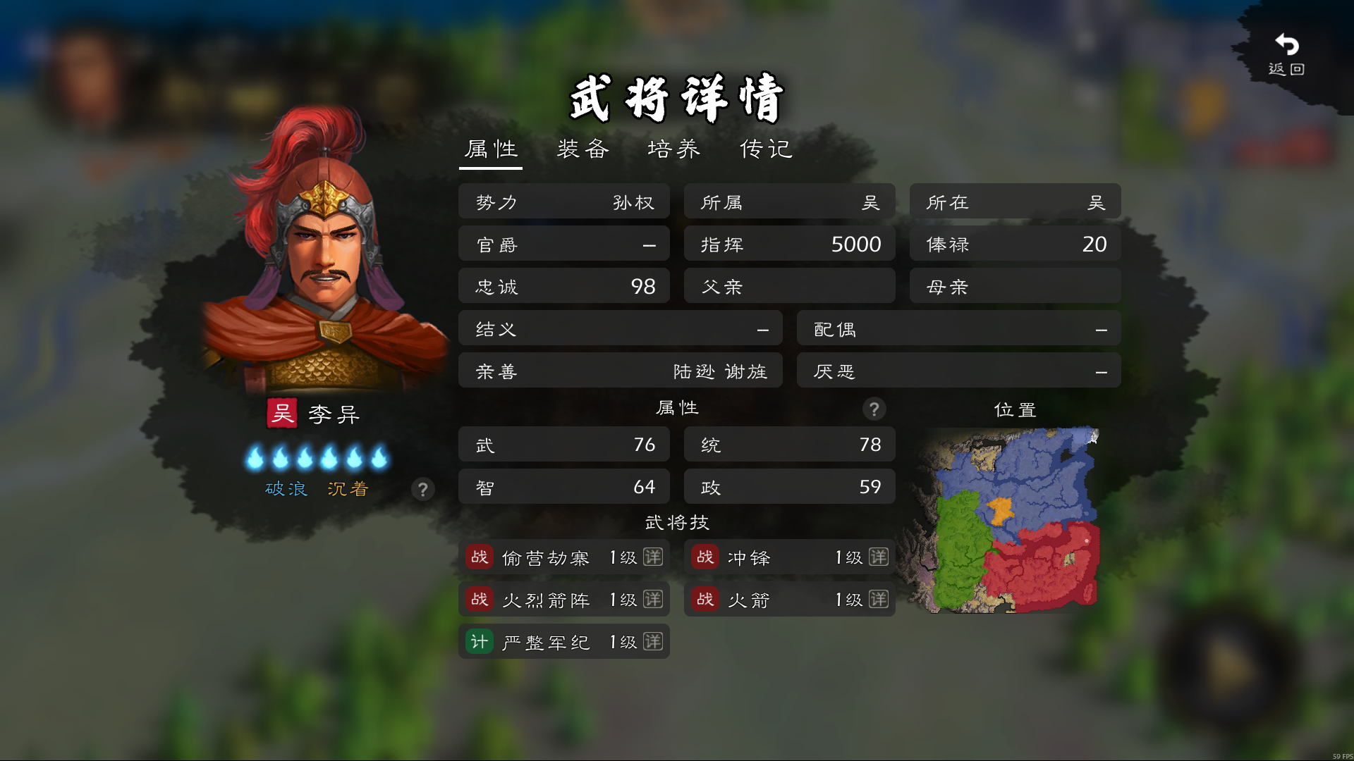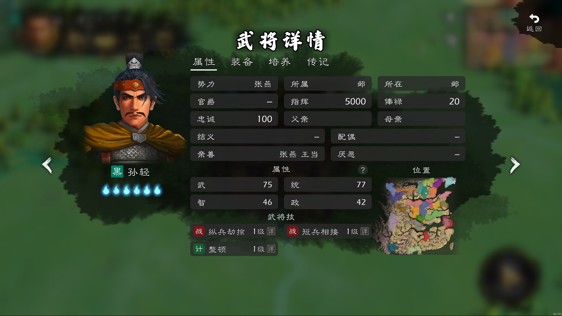 增加特性【治军】(黄):维持部队高昂的士气;减免设伏时的额外粮草消耗;