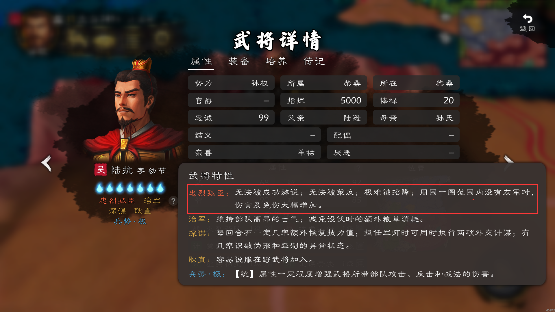 增加特性【信义笃烈】(蓝):极难被成功游说;无法被策反;极难被招降;