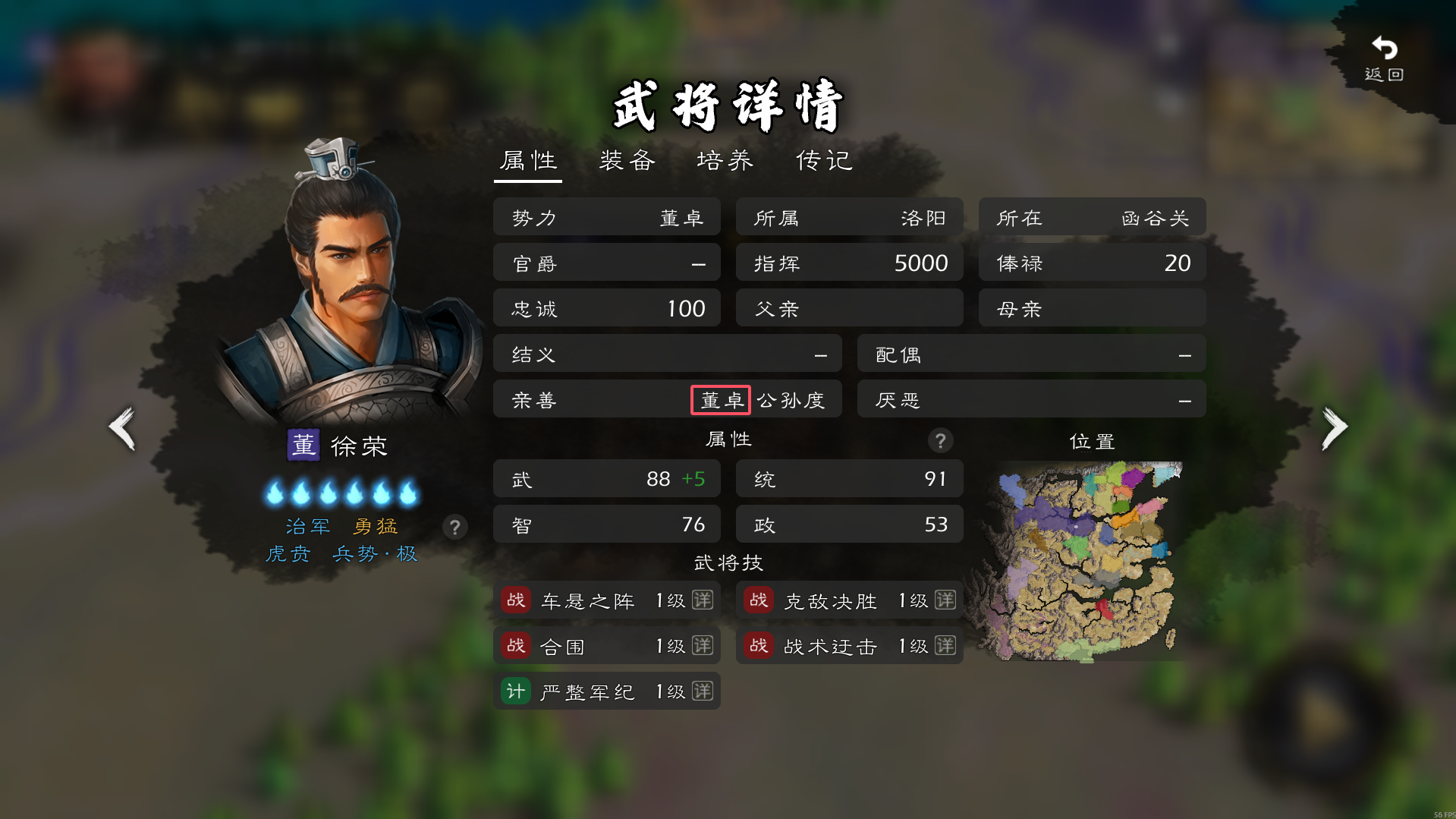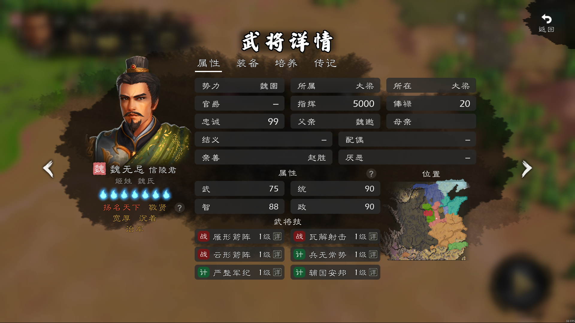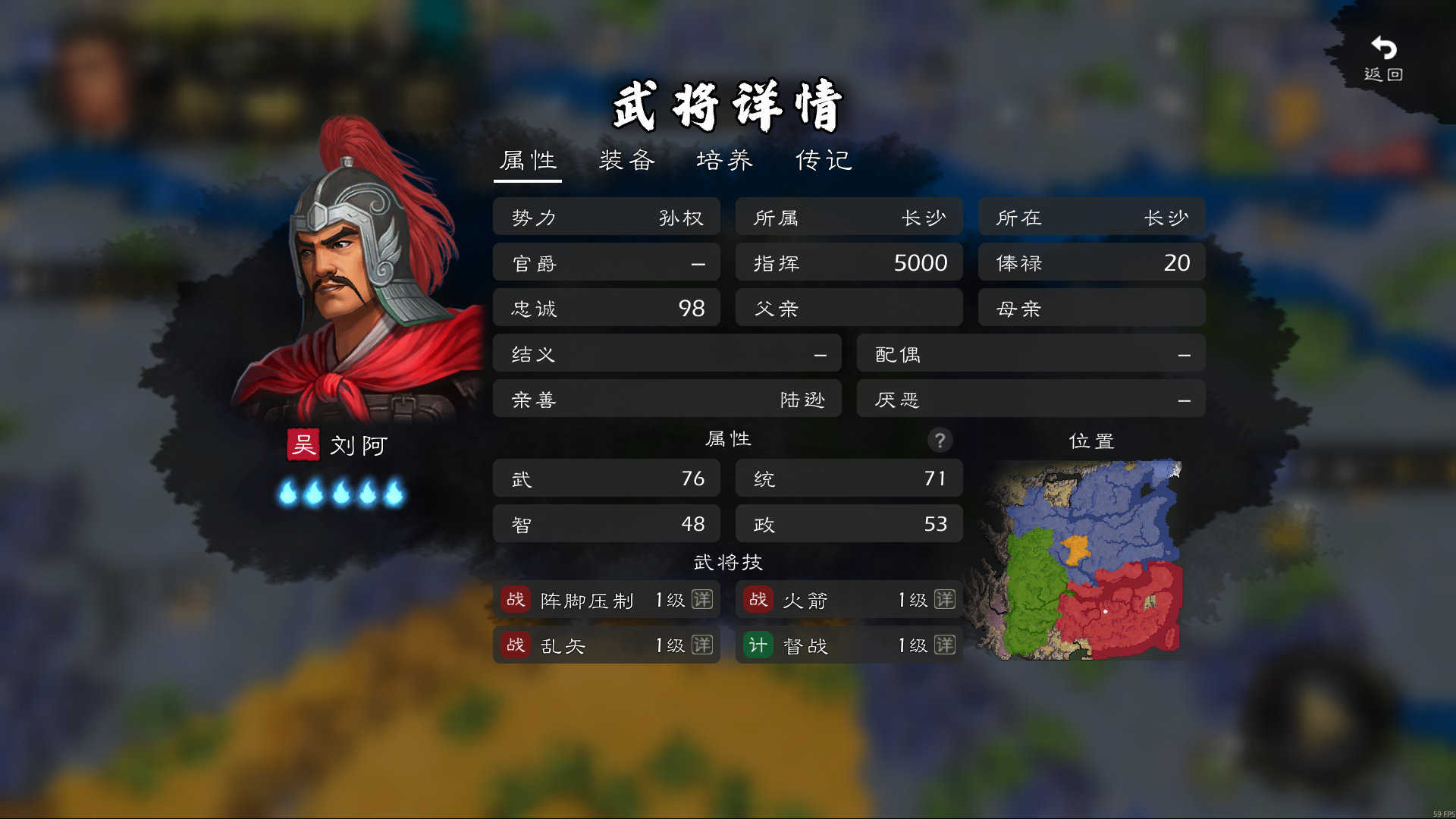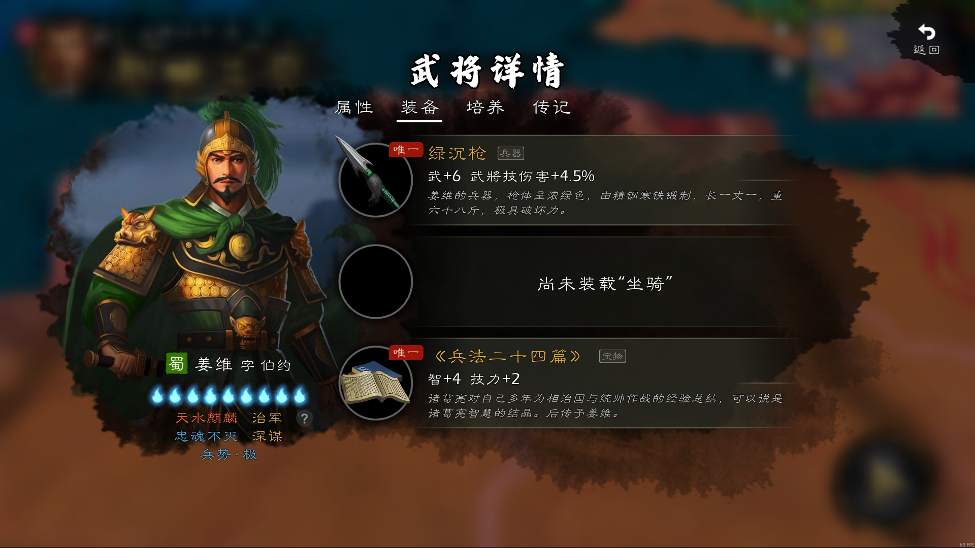 增加新特性【治军】(蓝):维持部队极高昂的士气;减免设伏时的额外粮草消耗;降低受到的所有伤害;