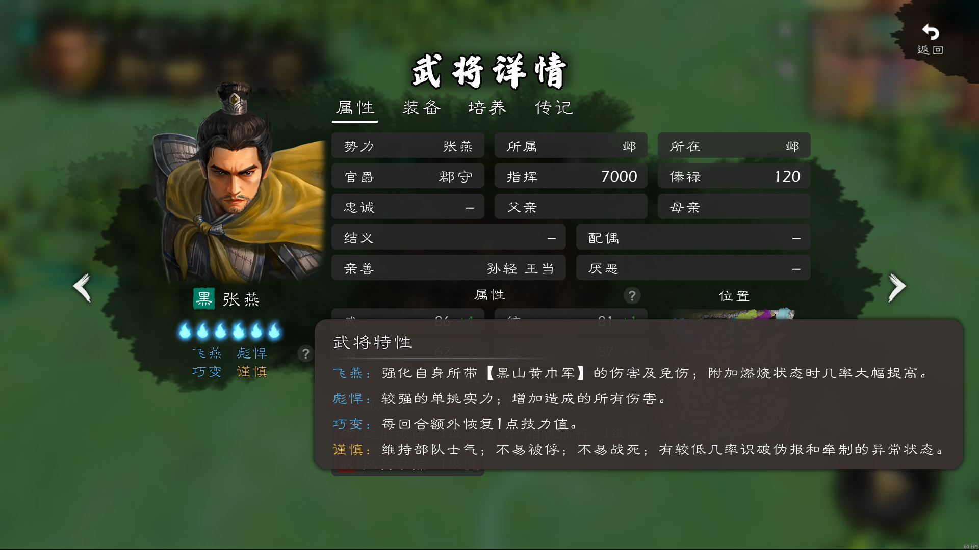 增加新特性【飞燕】(蓝):强化自身所带【黑山黄巾军】的伤害及免伤;附加燃烧状态时几率大幅提高。