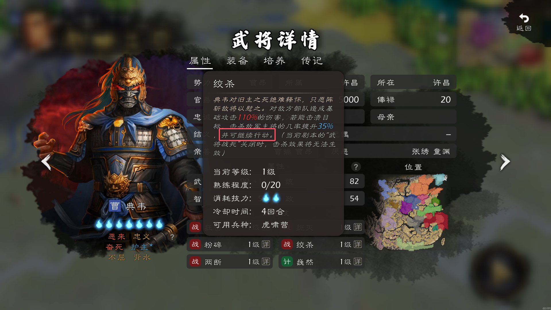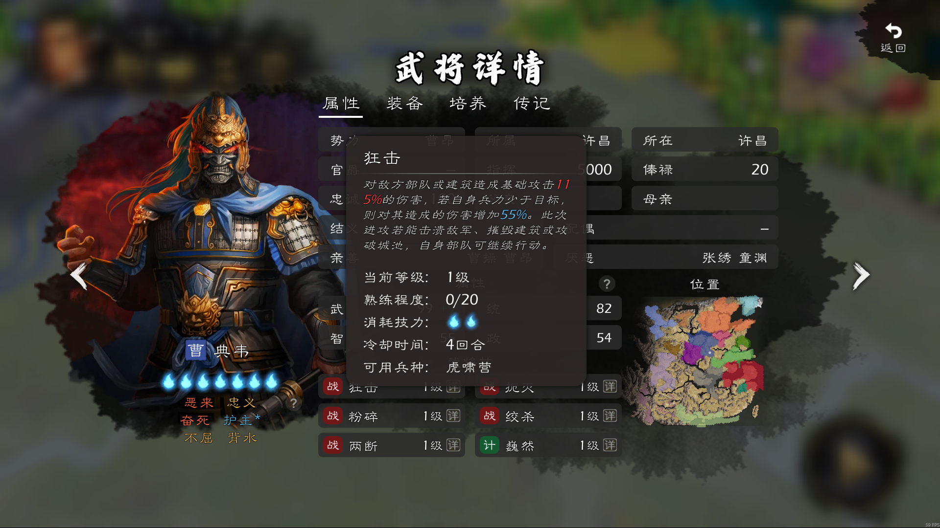 增加新特性【忠魂不灭】(蓝):无法被成功游说;无法被策反;极难被招降;当前兵力不足八千(含)时,增加造成的所有伤害;