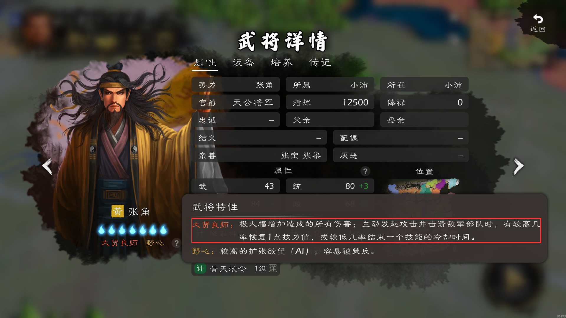 增加新特性【大贤良师】(红):极大幅增加造成的所有伤害;主动发起攻击并击溃敌军部队时,有较高几率恢复1点技力值,或较低几率结束一个技能的冷却时间。