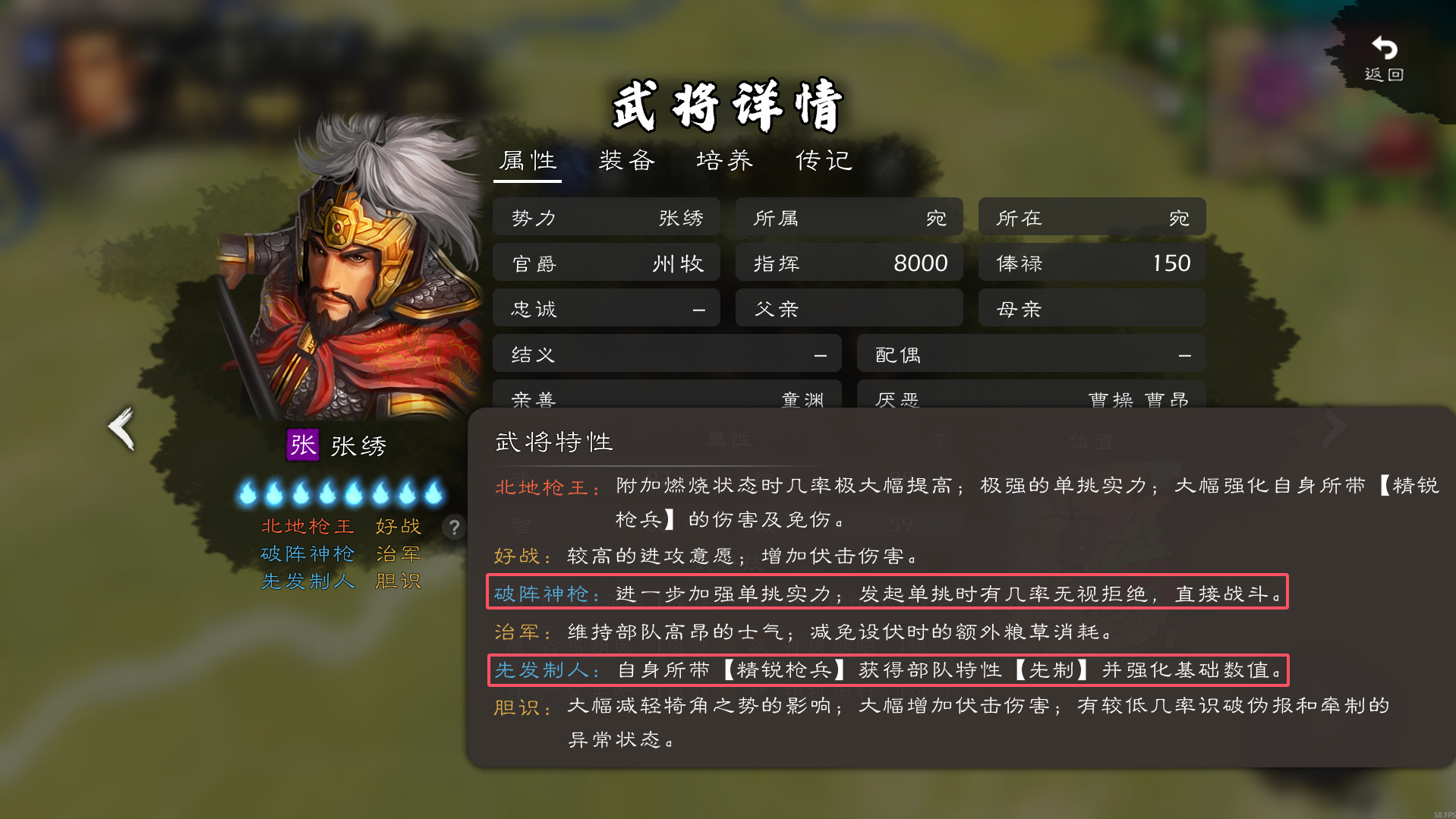2.新特性-破阵神枪(蓝):进一步加强单挑实力;发起单挑时有几率无视拒绝。