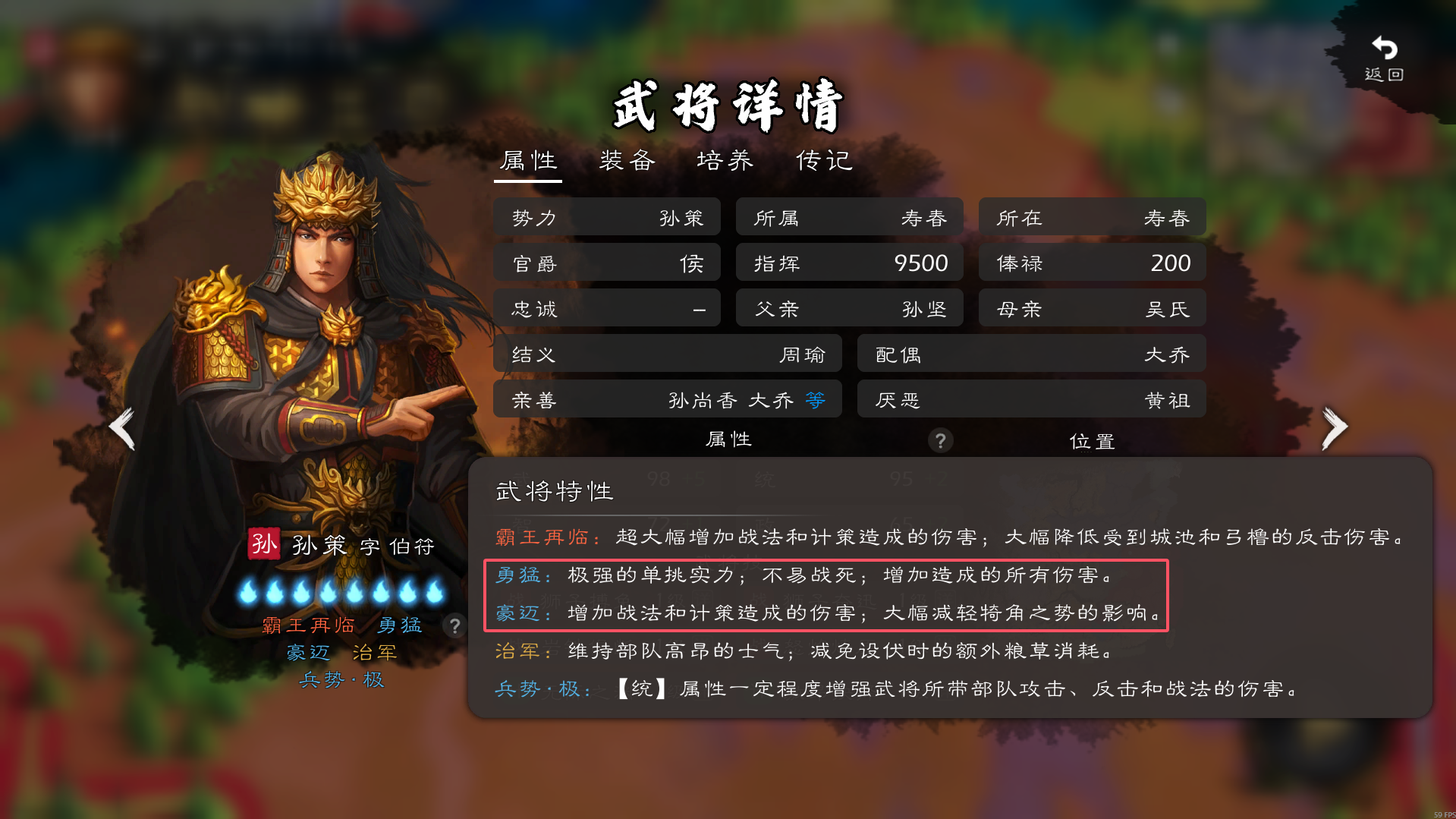 增加特性【豪迈】(蓝):增加战法和计策造成的伤害;大幅减轻犄角之势的影响;