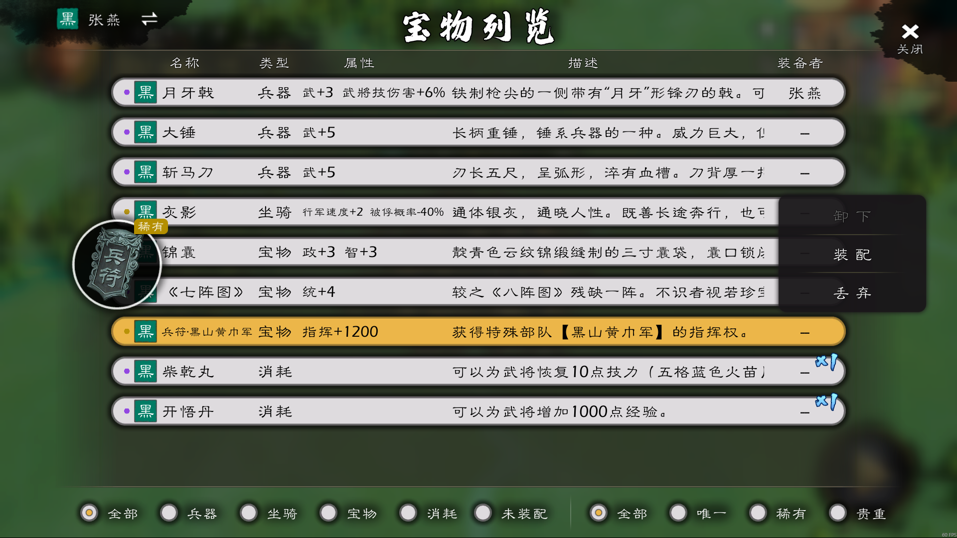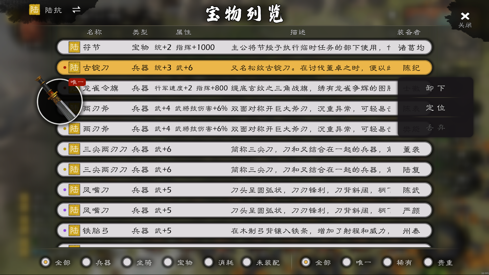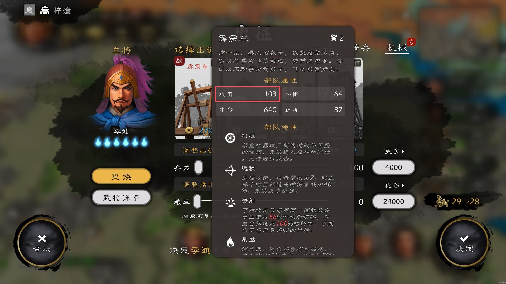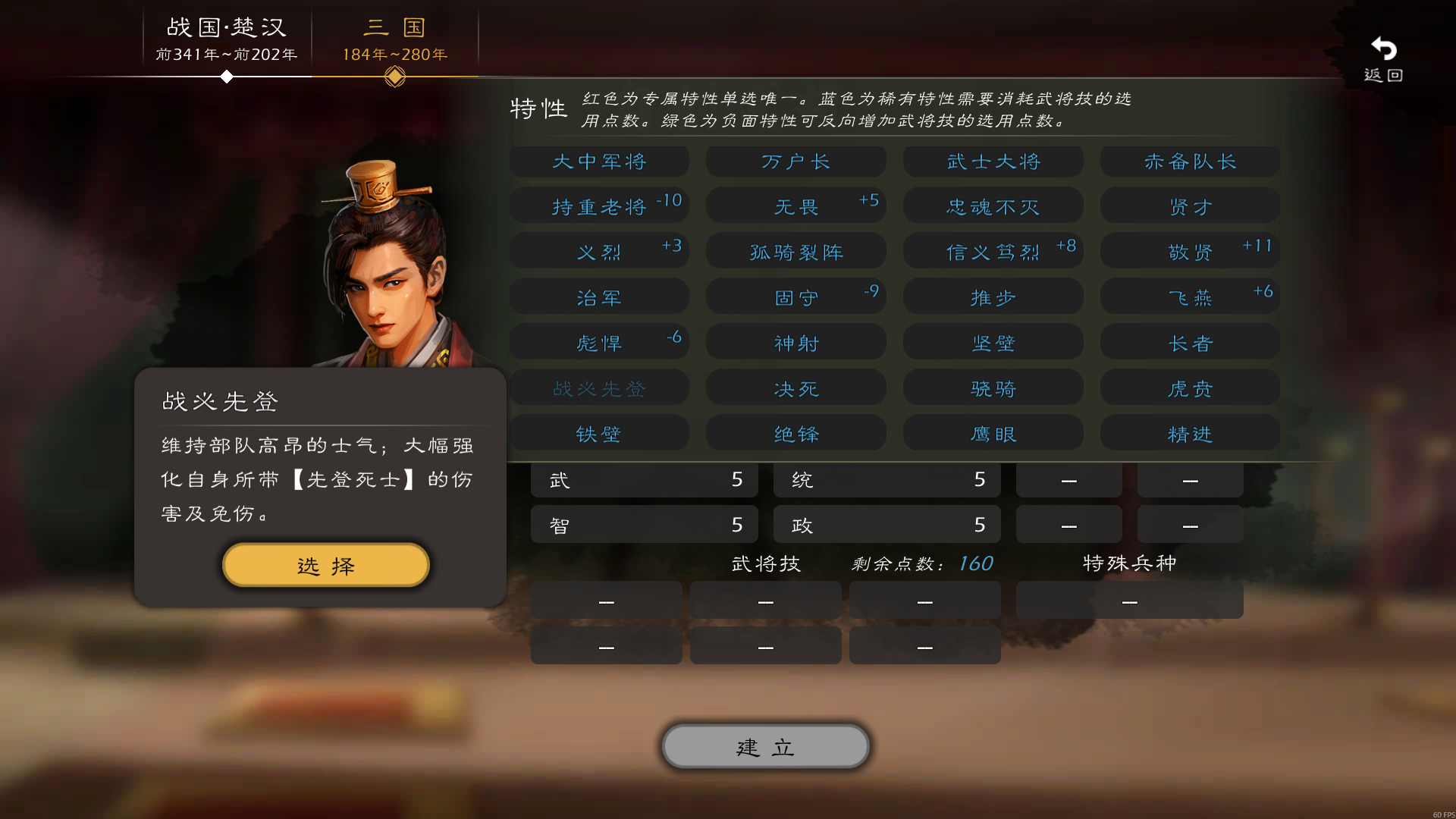 10.治军(蓝/三国、战国可用):维持部队极高昂的士气;减免设伏时的额外粮草消耗;降低受到的所有伤害。