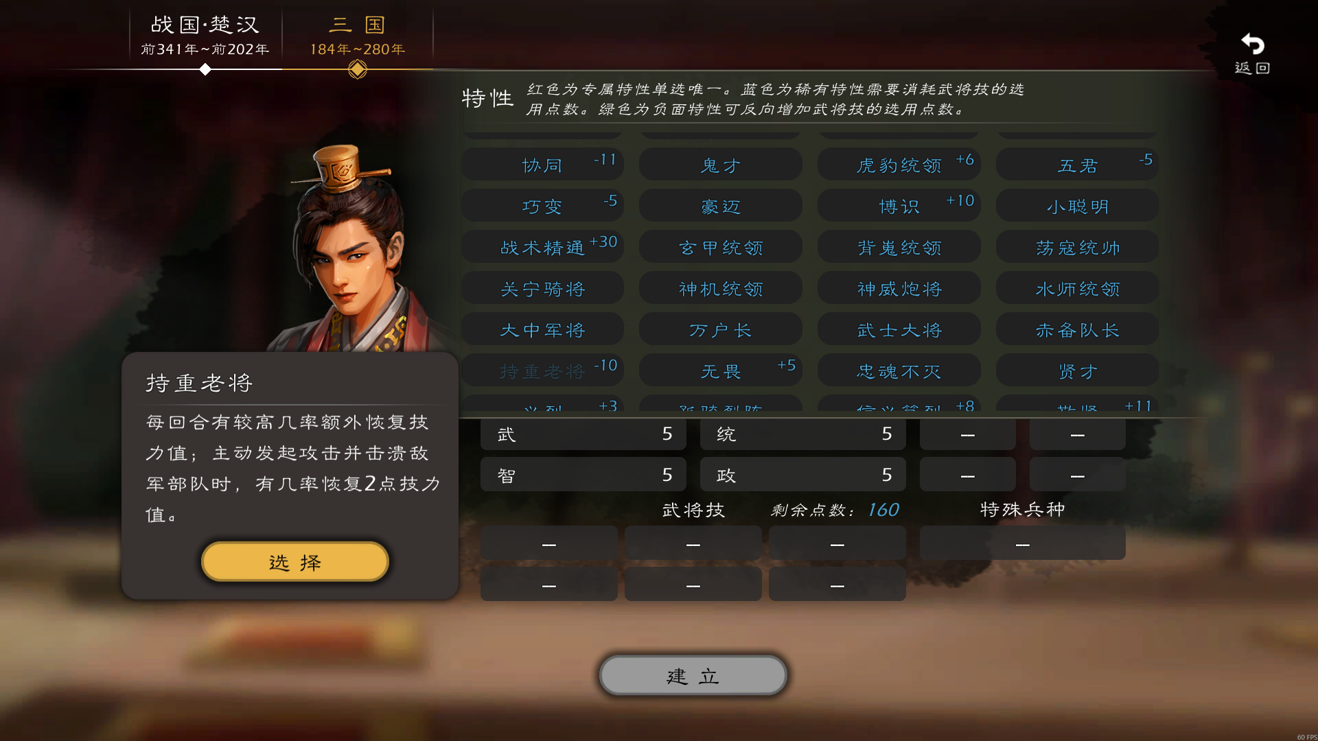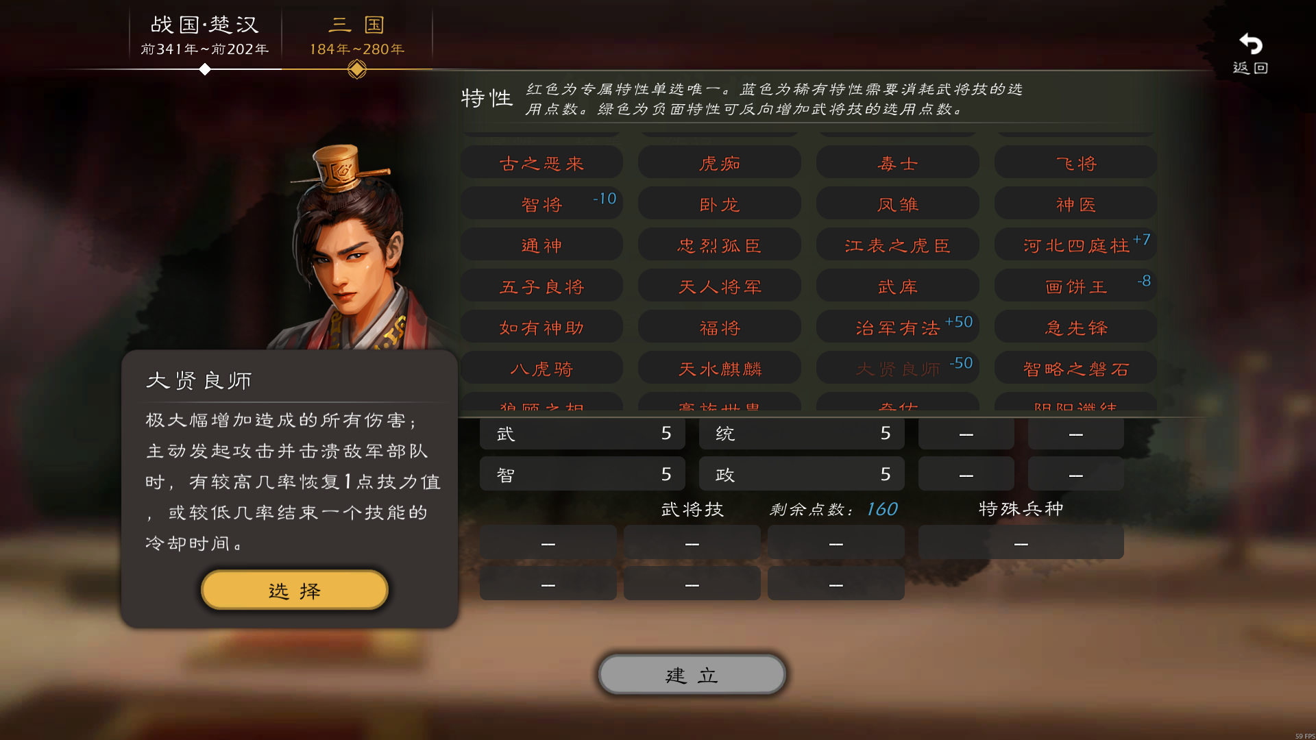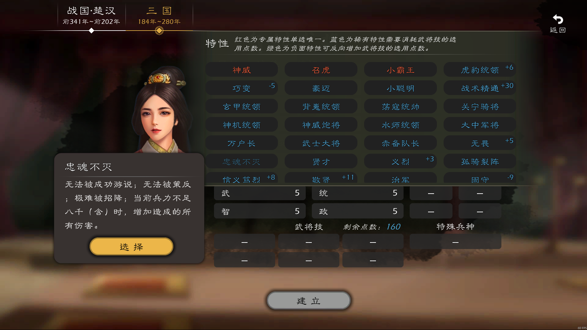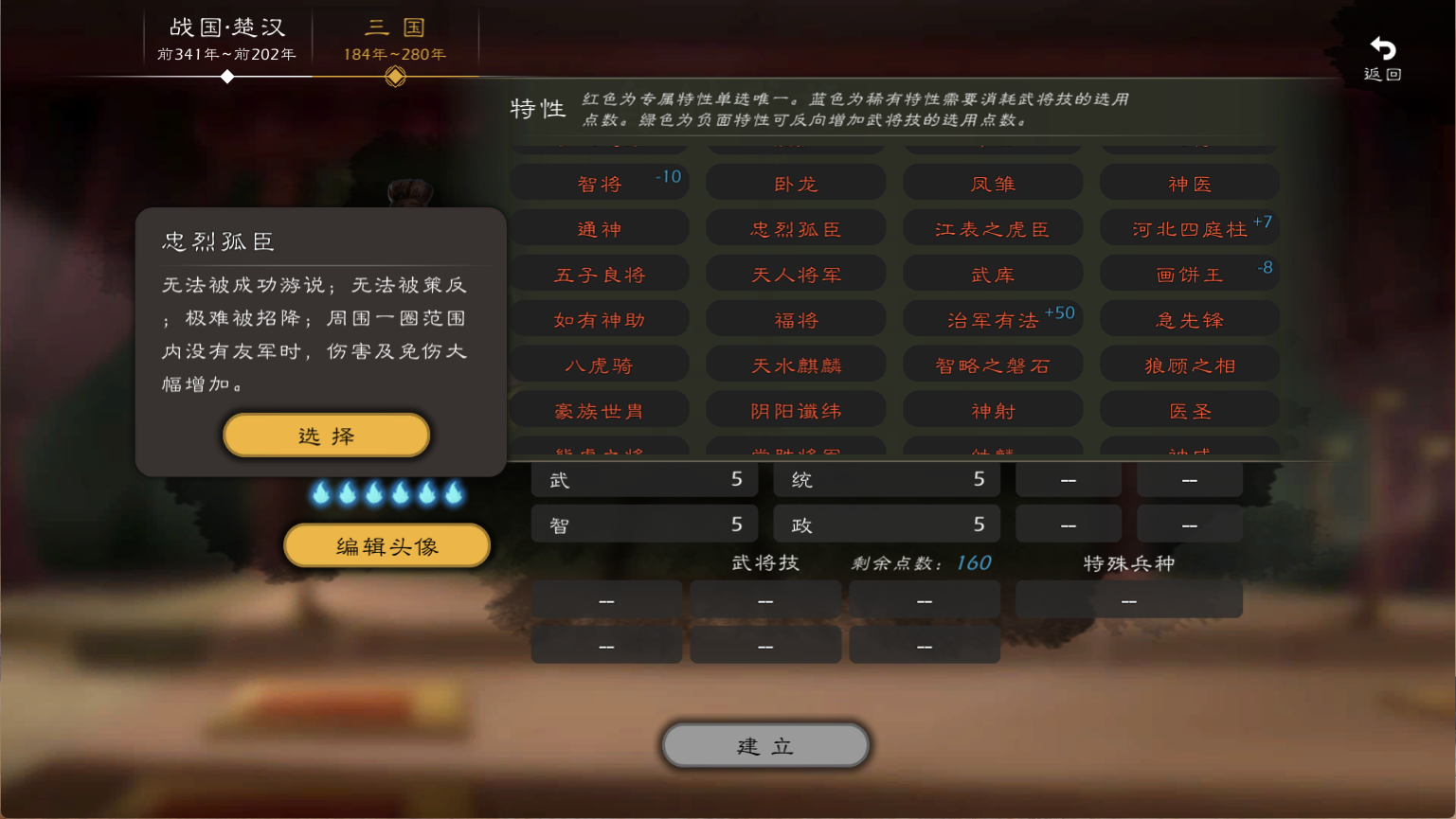 5.信义笃烈(蓝/三国可用):极难被成功游说;无法被策反;极难被招降。