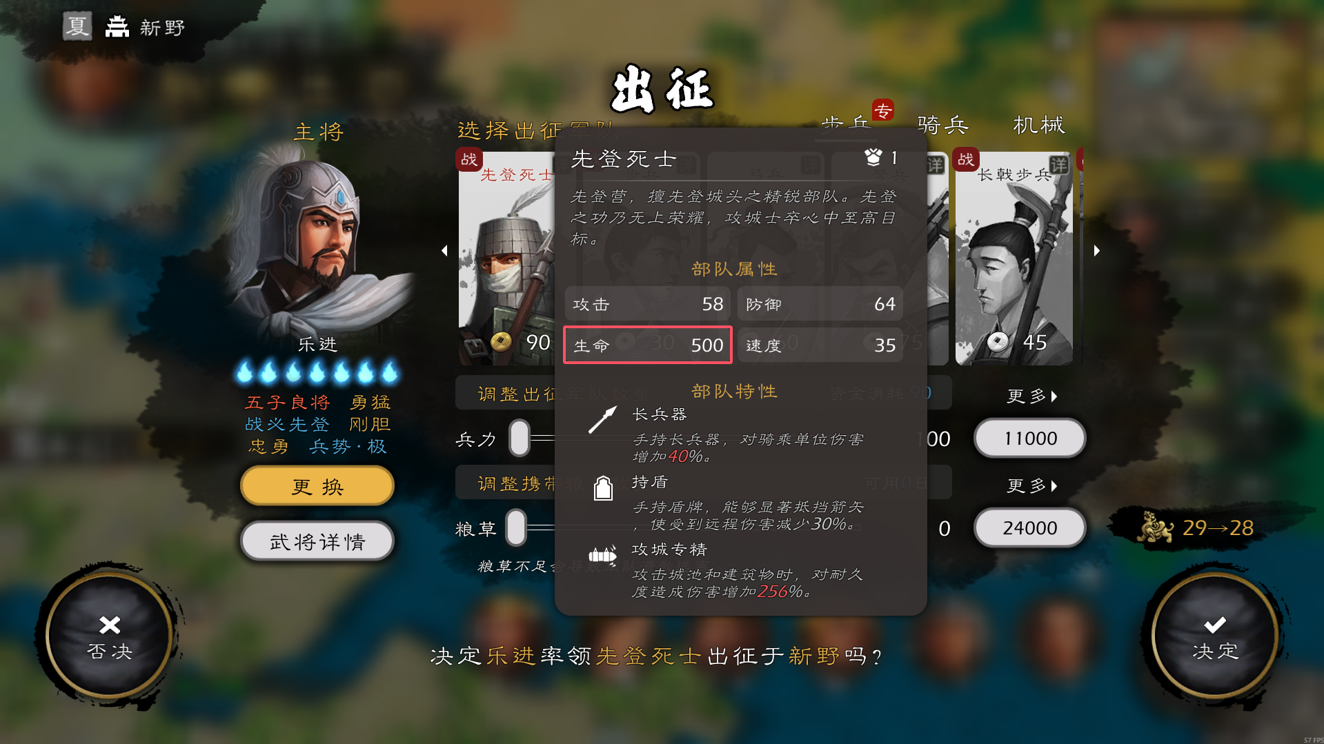 战必先登:强化先登死士的增伤和免伤效果数值上调。
