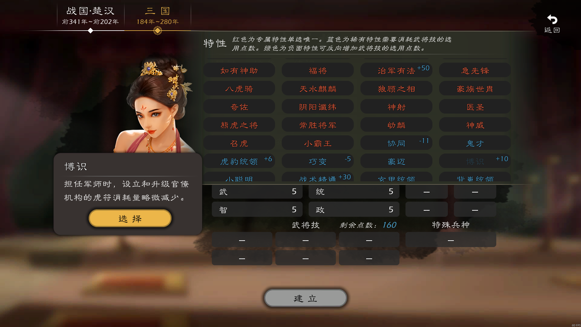 15.博识(蓝/三国、战国可用):担任军师时,设立和升级官僚机构的虎符消耗量略微减少。