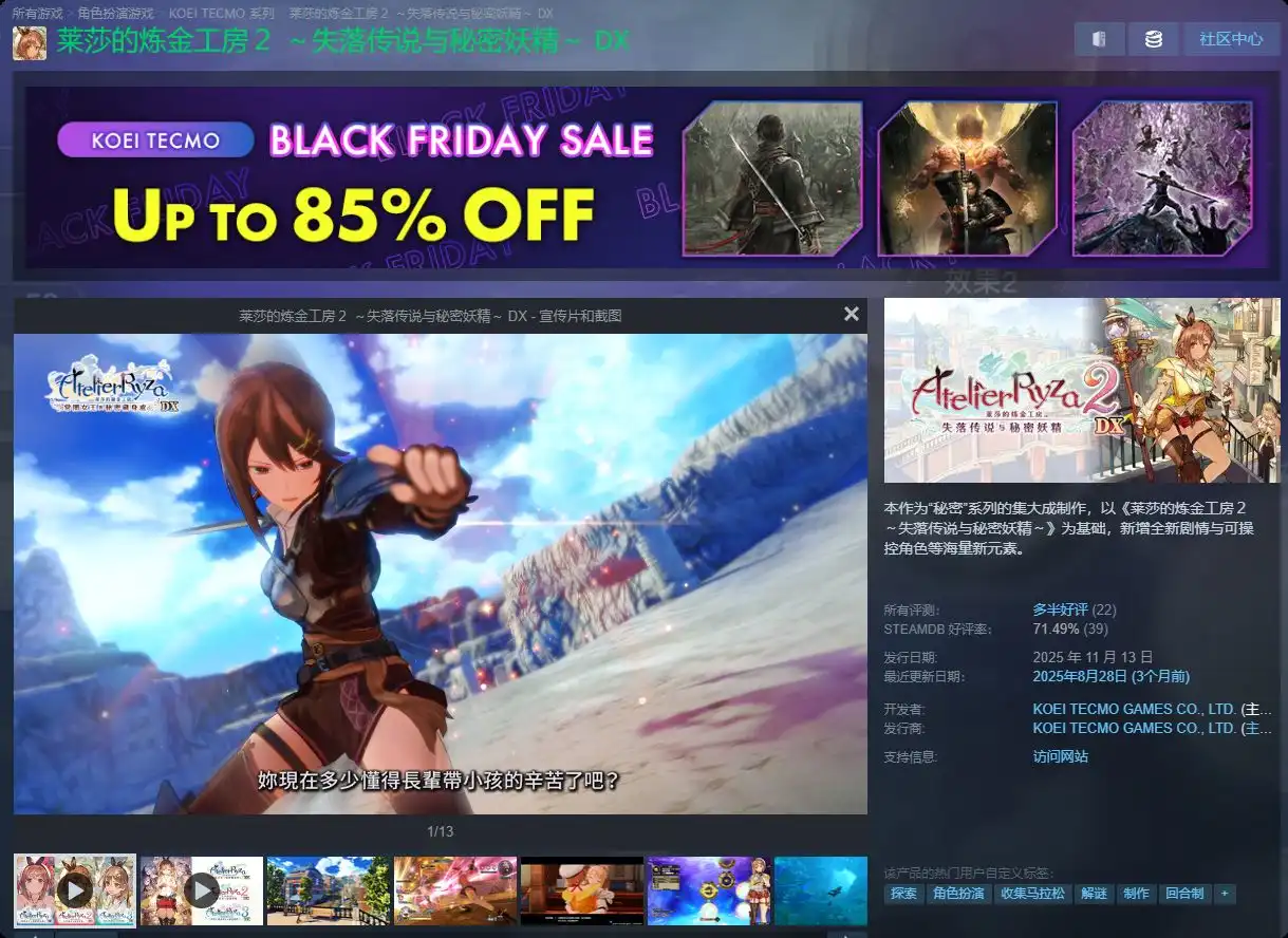作为三部曲之二,DX2总体来说就是在建模没变的情况下稍微调整一下光影,附带全DLC内容,然后最主要的就是加了原版没有的一小段剧情,地图和角色,而且还卖的便宜了,早买早享受,晚买赚麻了!对新玩家来说,如果对莱莎感兴趣算是一个入手的好机会。