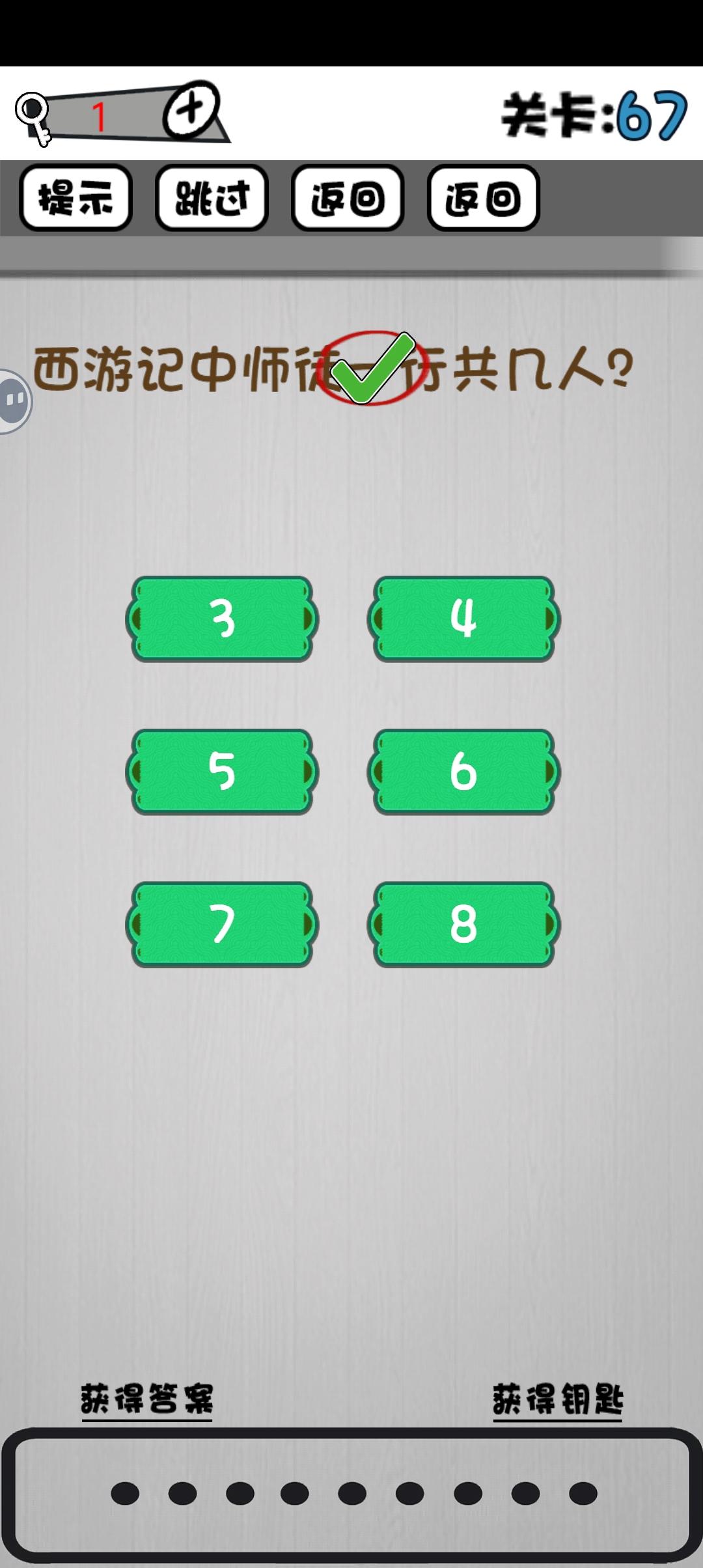 65,点题目上的“一”,唐僧师徒,只有他是人。