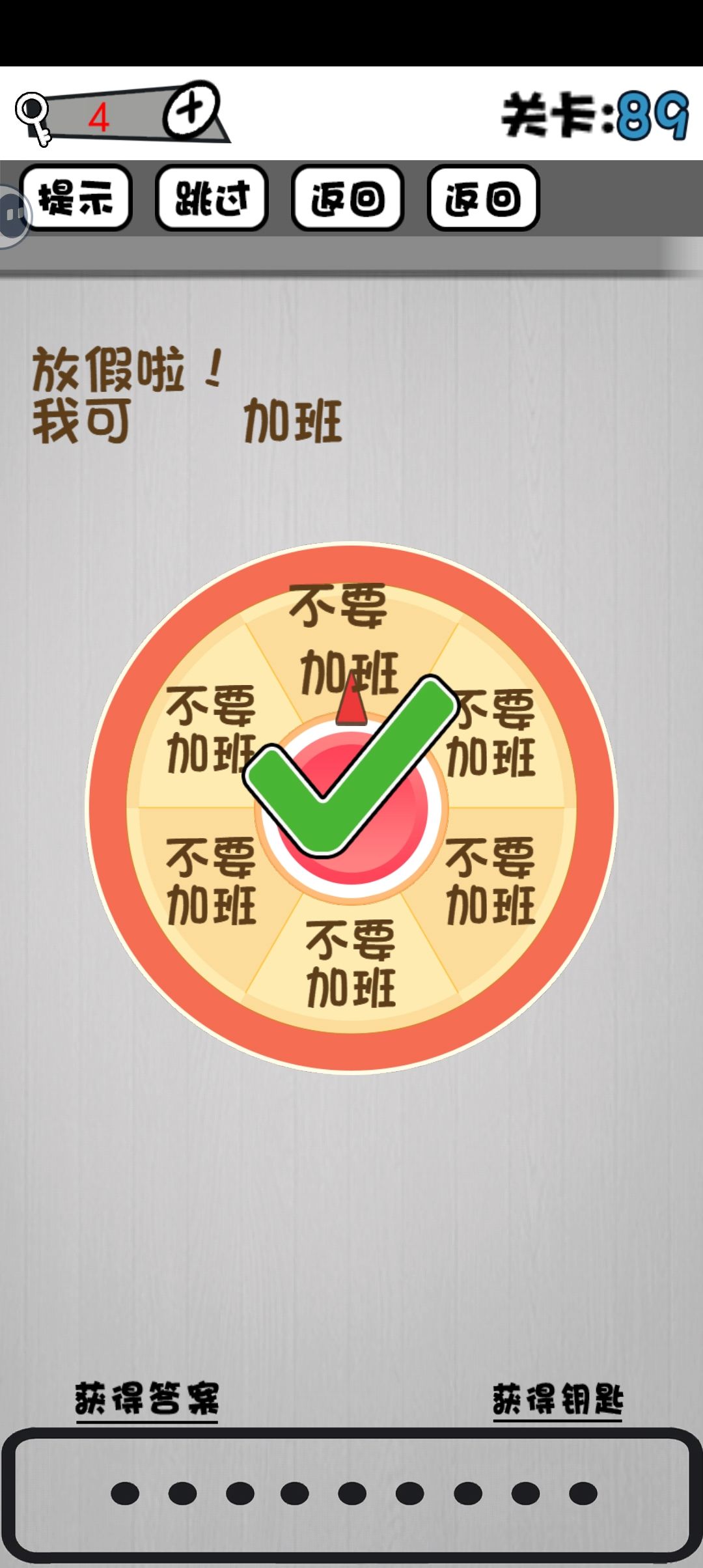 89,题目上的“不要”移到下面加班,组合成“不要加班”。