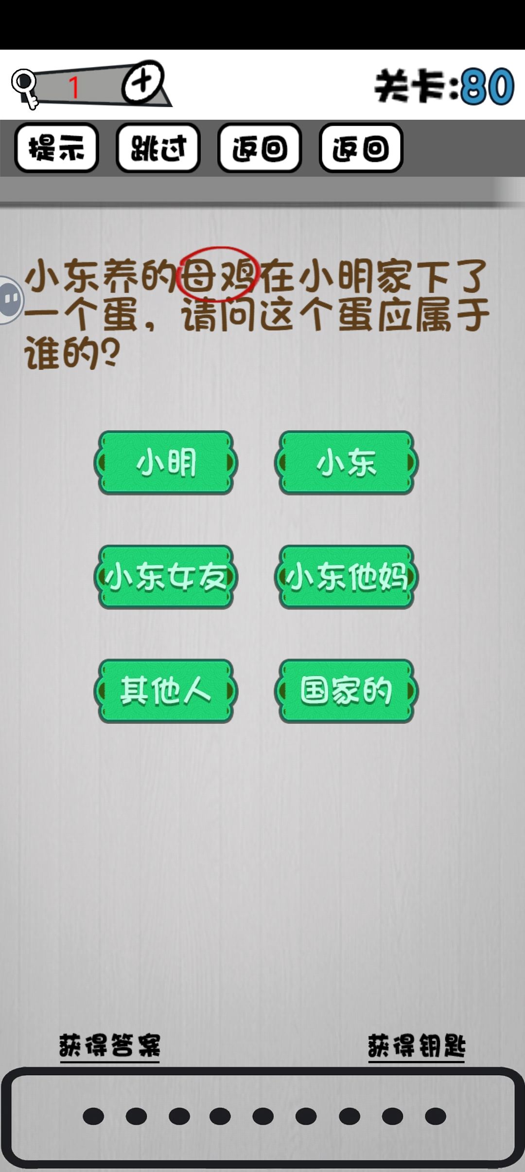 80,点题目上的“母鸡”。