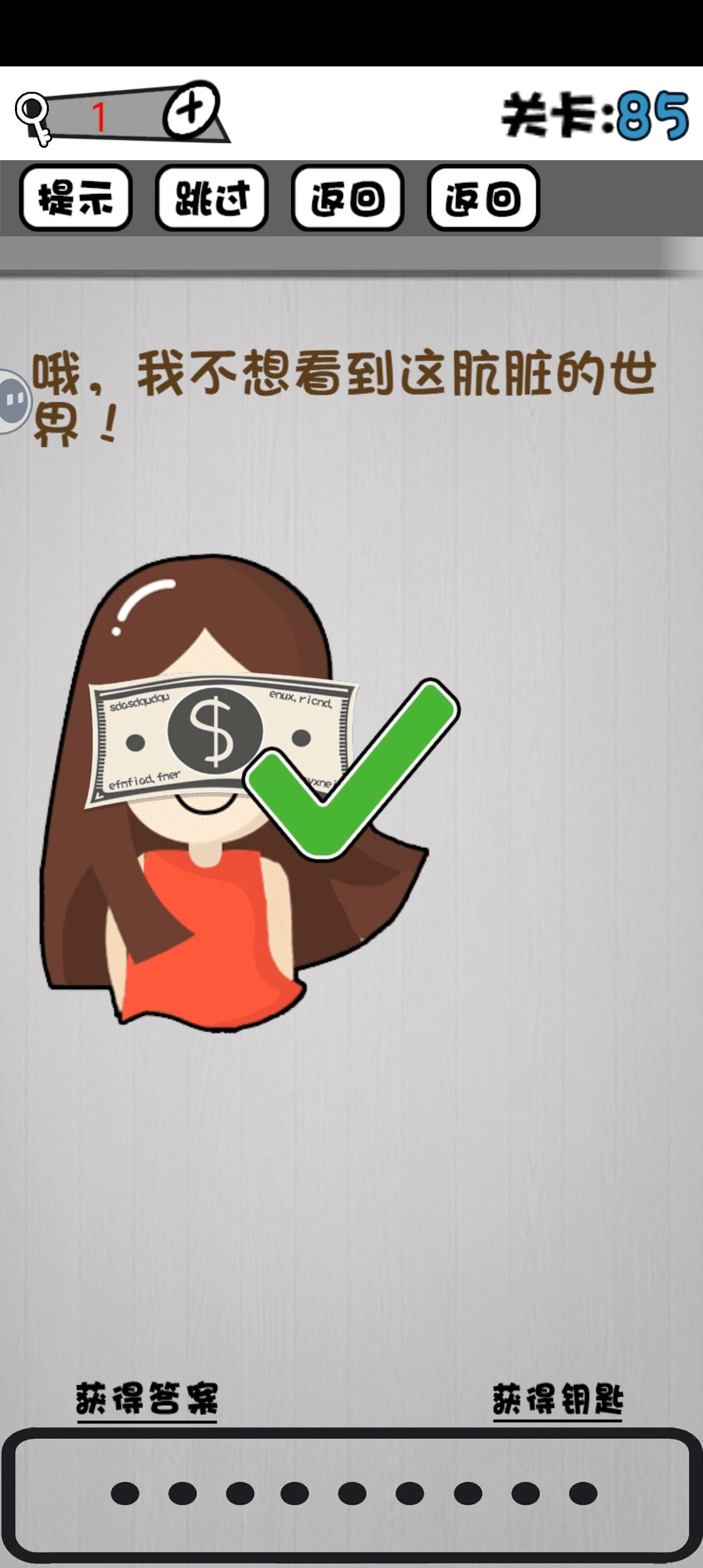 85,钱遮住眼睛。