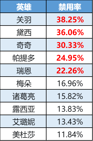 禁用率榜-黛西黑马式攀升,奇奇退居其次
