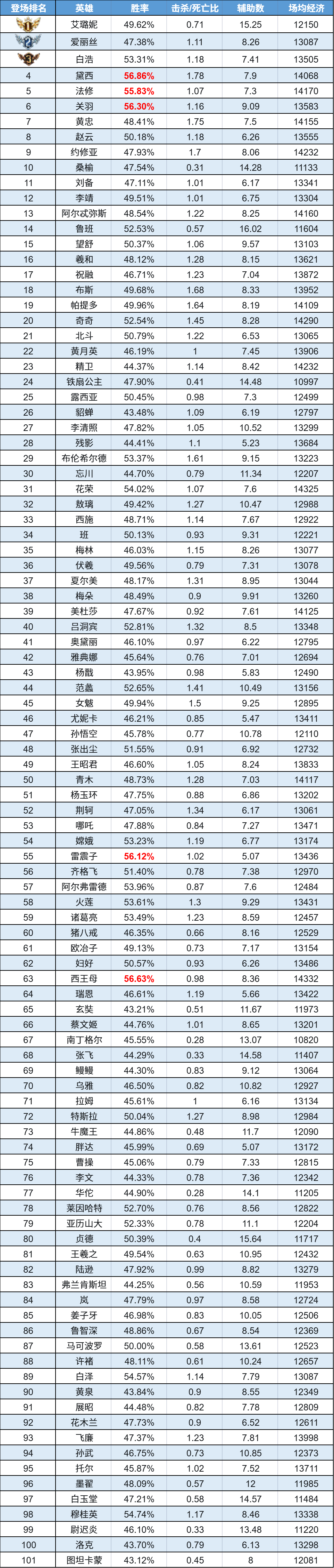 【高段位】黛西热度稳步上分,一举拿下胜率TOP1,关羽胜率退居第三;西王母闷声发大财,登上均场经济榜首。