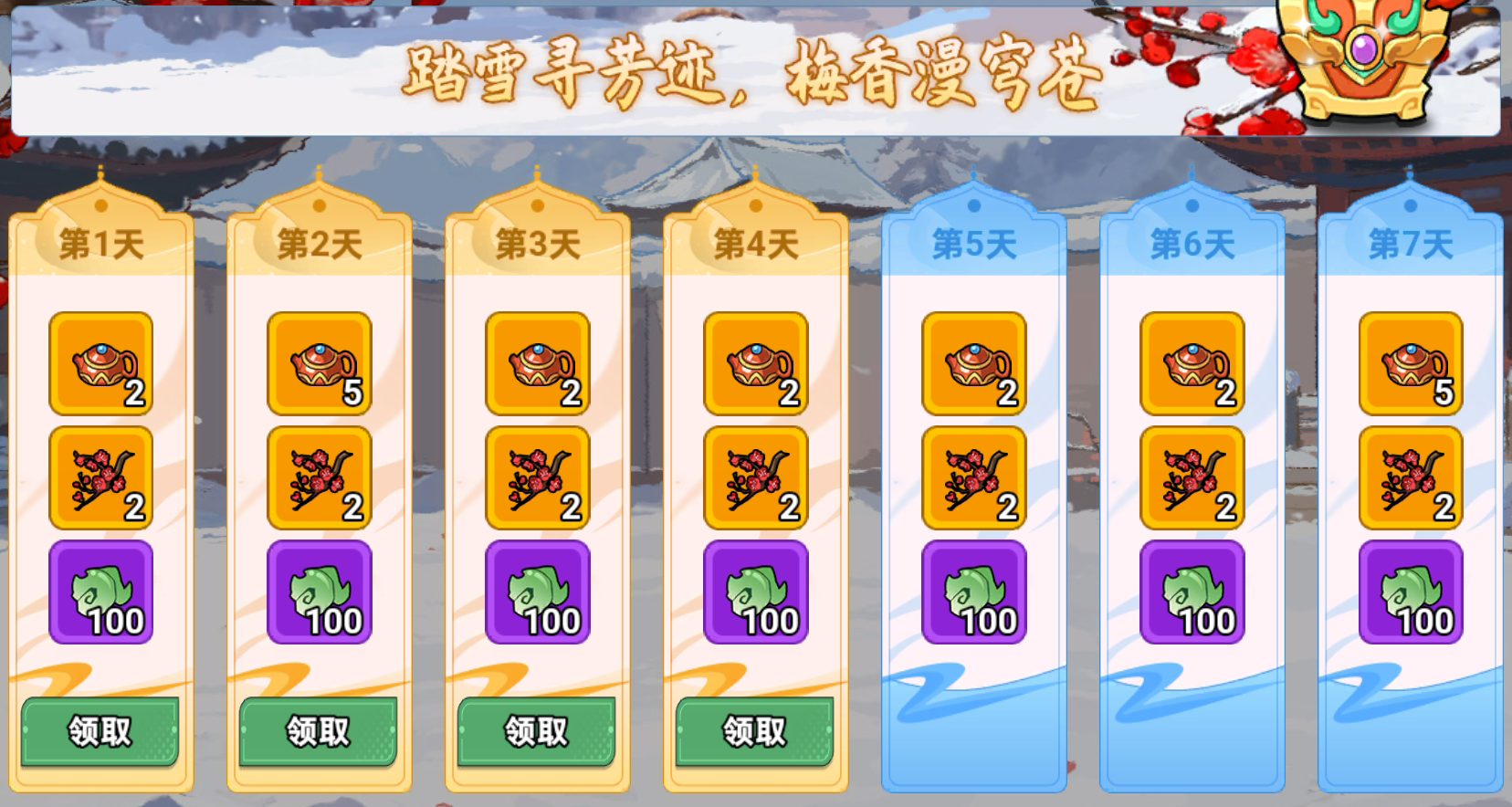 2. 活动结束后,未使用的梅花将自动转化为少量金币,未使用的茶器会转化为少量仙玉