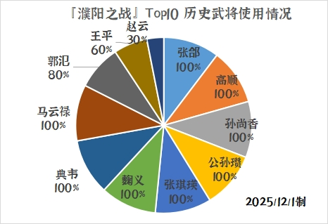 其中,“武将名 x%”代表该历史武将在本次战役的前十玩家中使用率为x%。