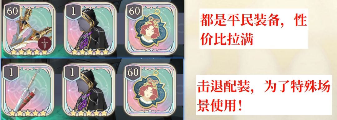 配招说明:配招只推荐一套,这个角色不建议给球,输出较低!目前作用就是前期过渡+击退机制!