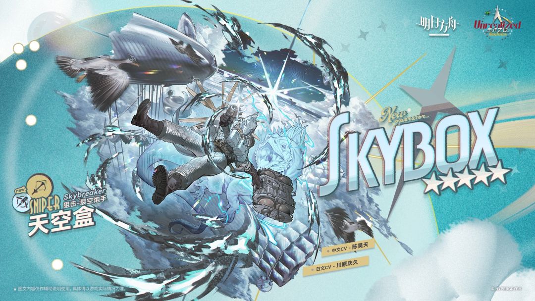 一技能,源石火药驾临,天空盒下次攻击变为投掷源石炸弹,爆炸范围扩大,造成相当于攻击力一定比例的物理伤害,可充能
