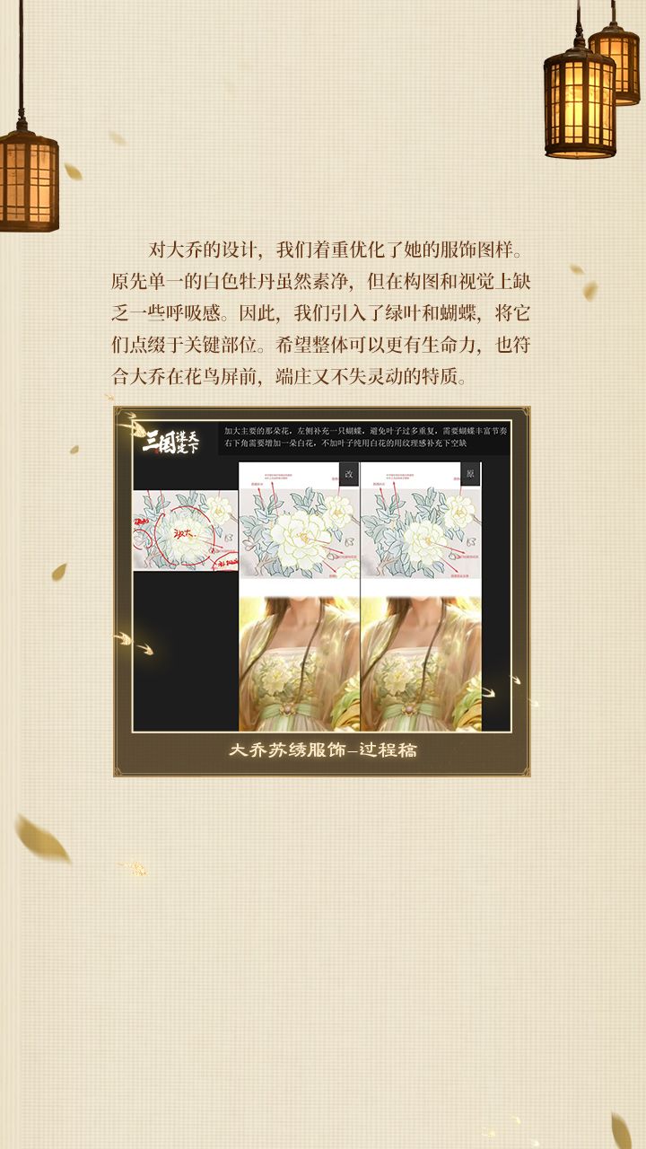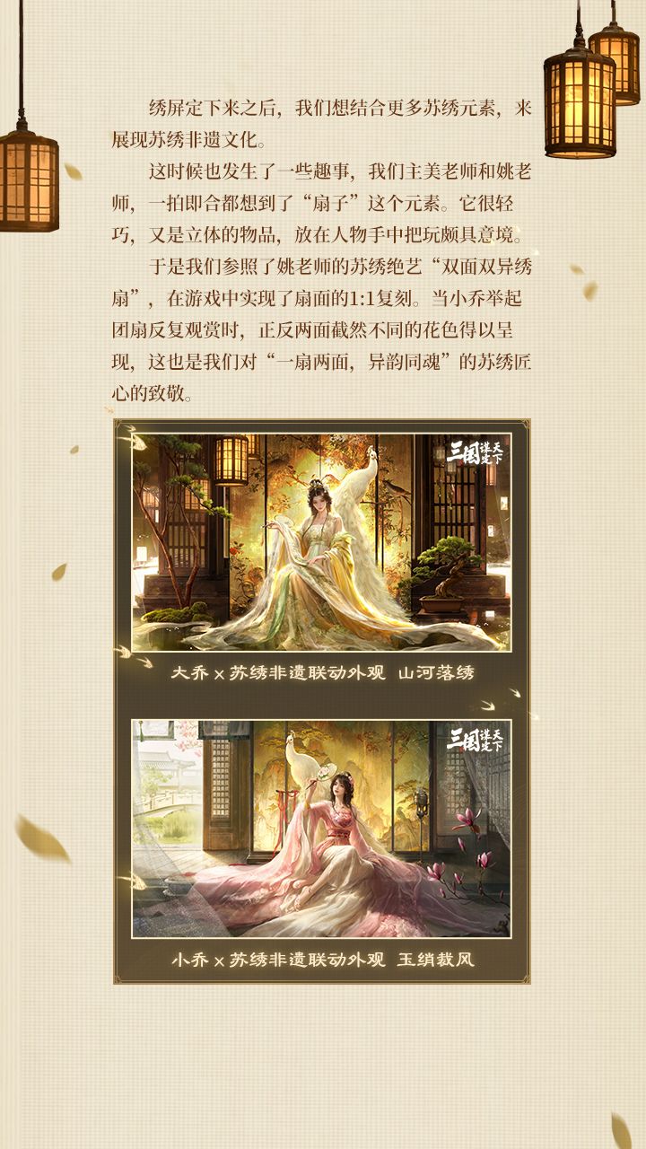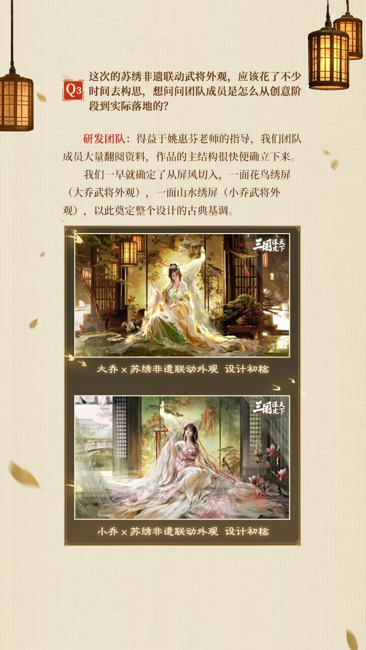 《三国:谋定天下》苏绣非遗联动「绣影双生」——双乔武将外观,研发设计稿首次对外!欢迎走进研发设计专访,聆听联动背后的设计故事!