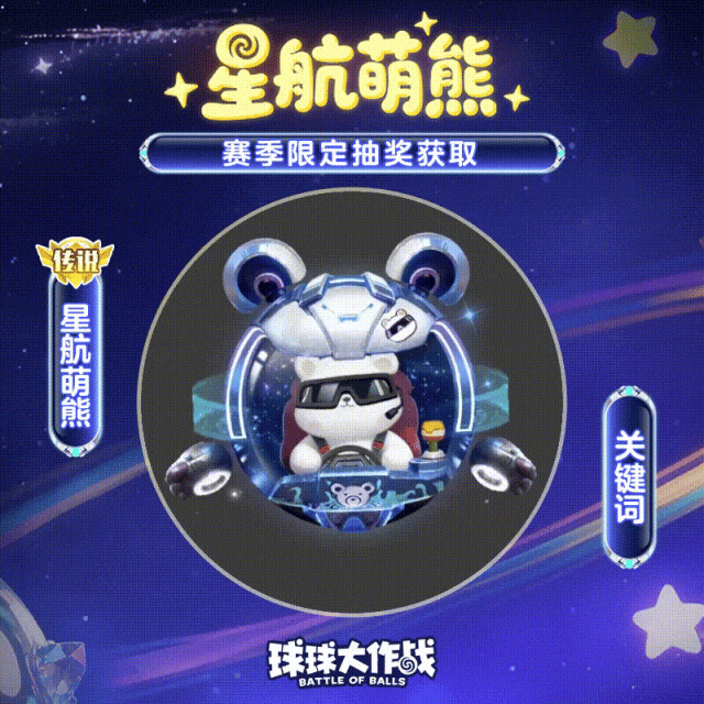 赛季限定抽奖获取传说关键词「星航萌熊」!萌萌的小白熊戴着酷酷的墨镜,它所驾驶的飞船马上就要启航啦~立即解锁,加入它的星际冒险吧!