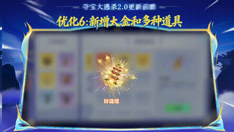 珍贵大金、海量道具上新!价值10w的大金道具玲珑塔降临!踏云靴增速10%,龙鳞甲增加护盾值...战力升级!全新神装助球宝称霸夺宝战场!