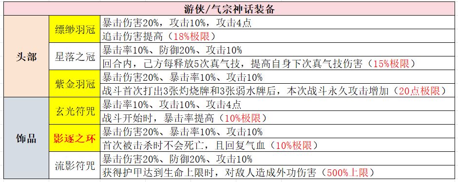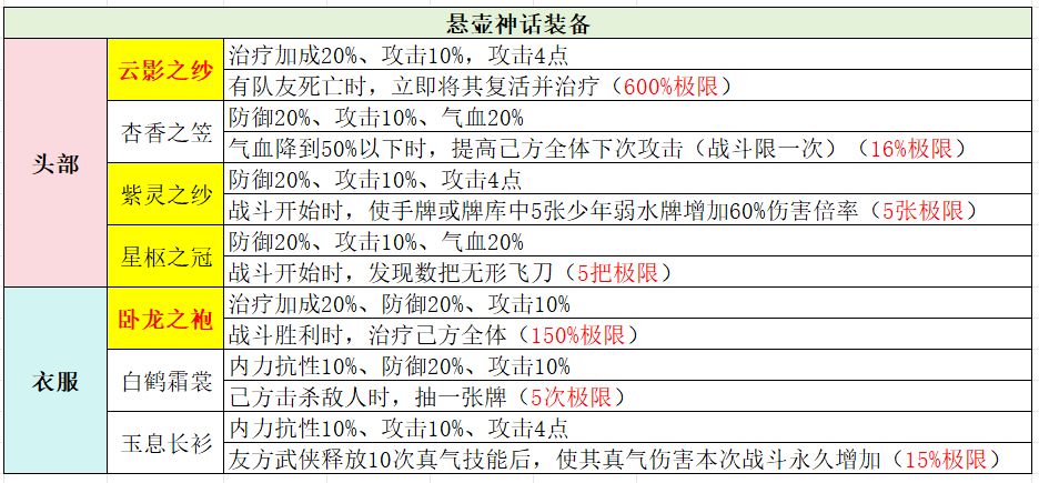 【全】武侠套装、神话装备详解(含各阵容推荐装备搭配)