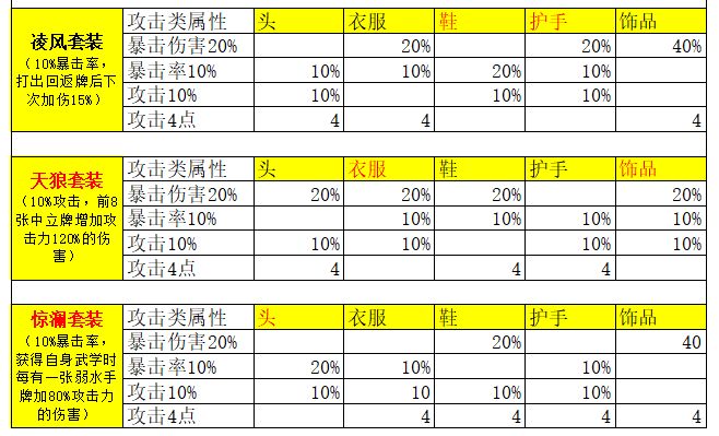 接下来对于一些常见阵容的装备进行搭配,由于目前的装备套装效果皆没有特别突出的效果,
