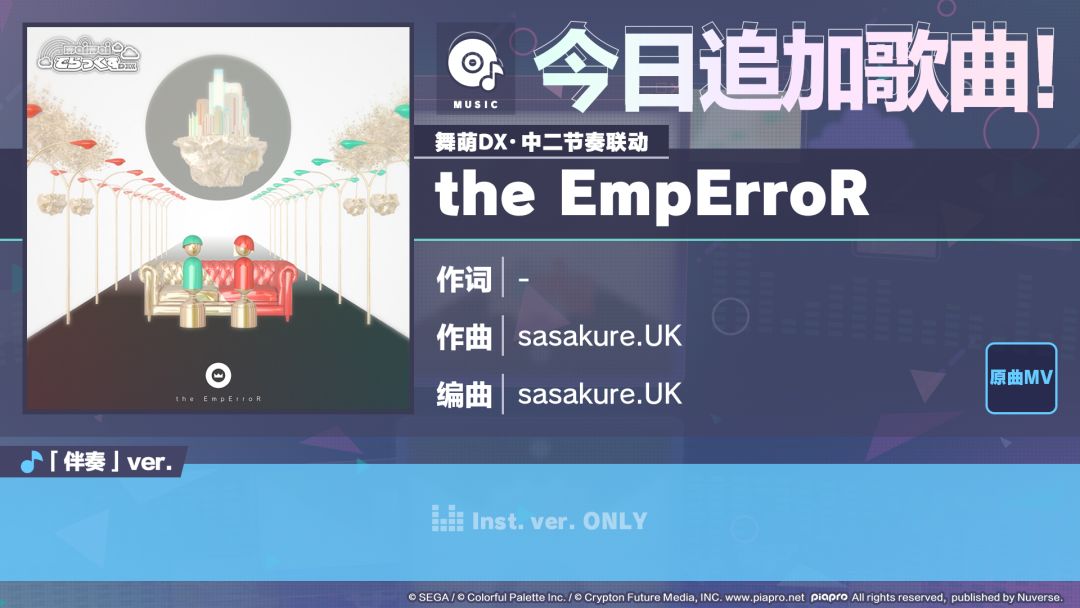 12/5 12:00起,追加《初音未来:缤纷舞台》×《舞萌DX》《中二节奏》联动歌曲《the EmpErroR》!
