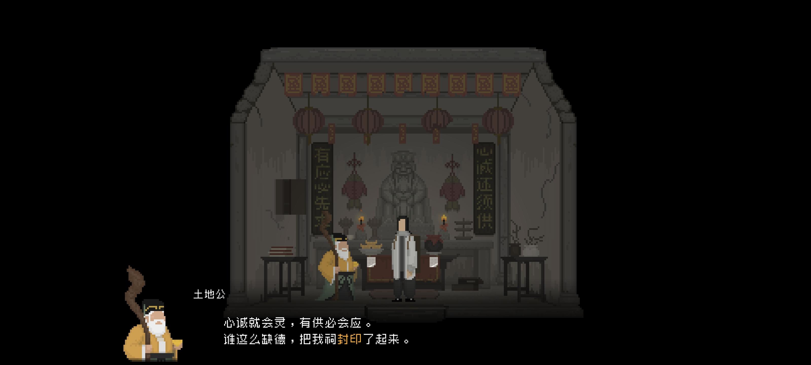 与古怪的女人对话后 往右走 发现土地祠被封印了