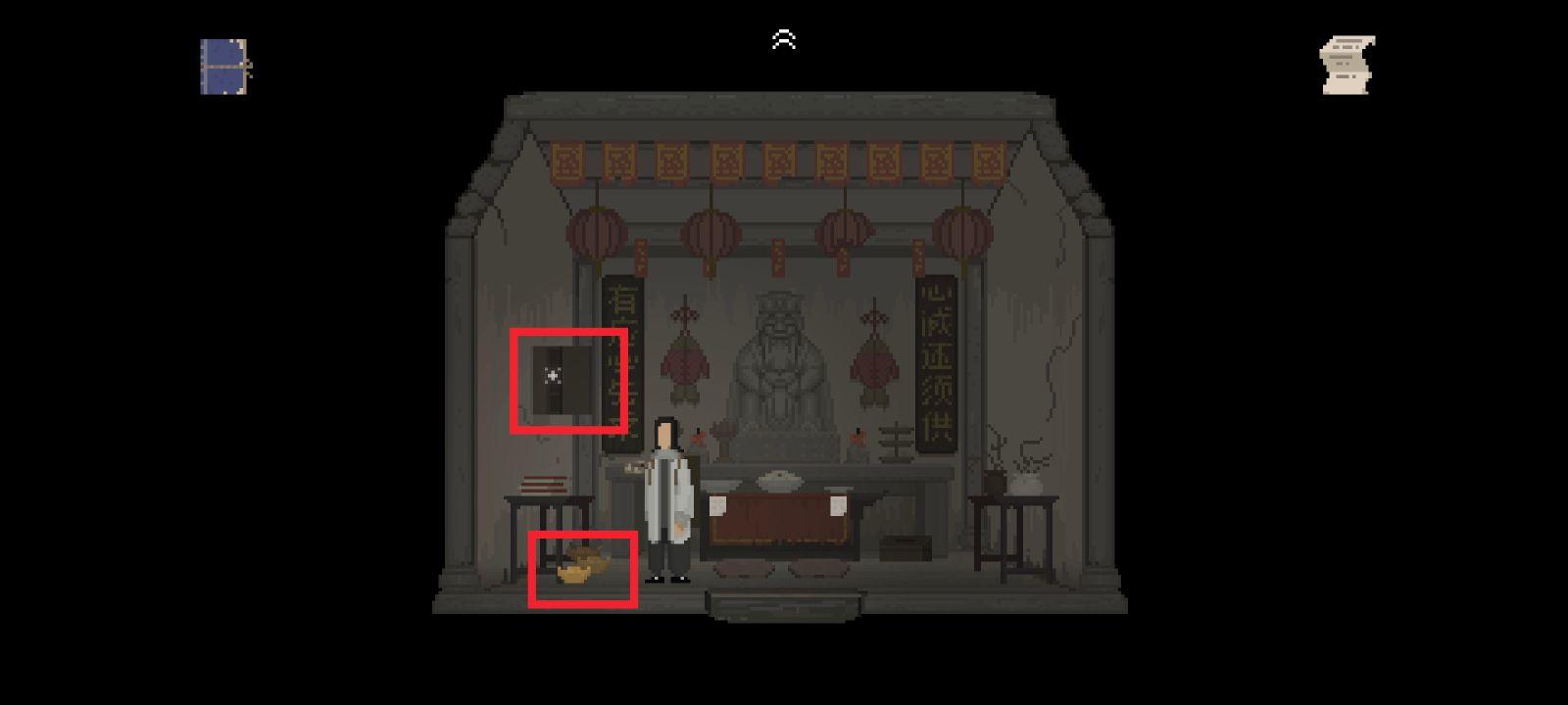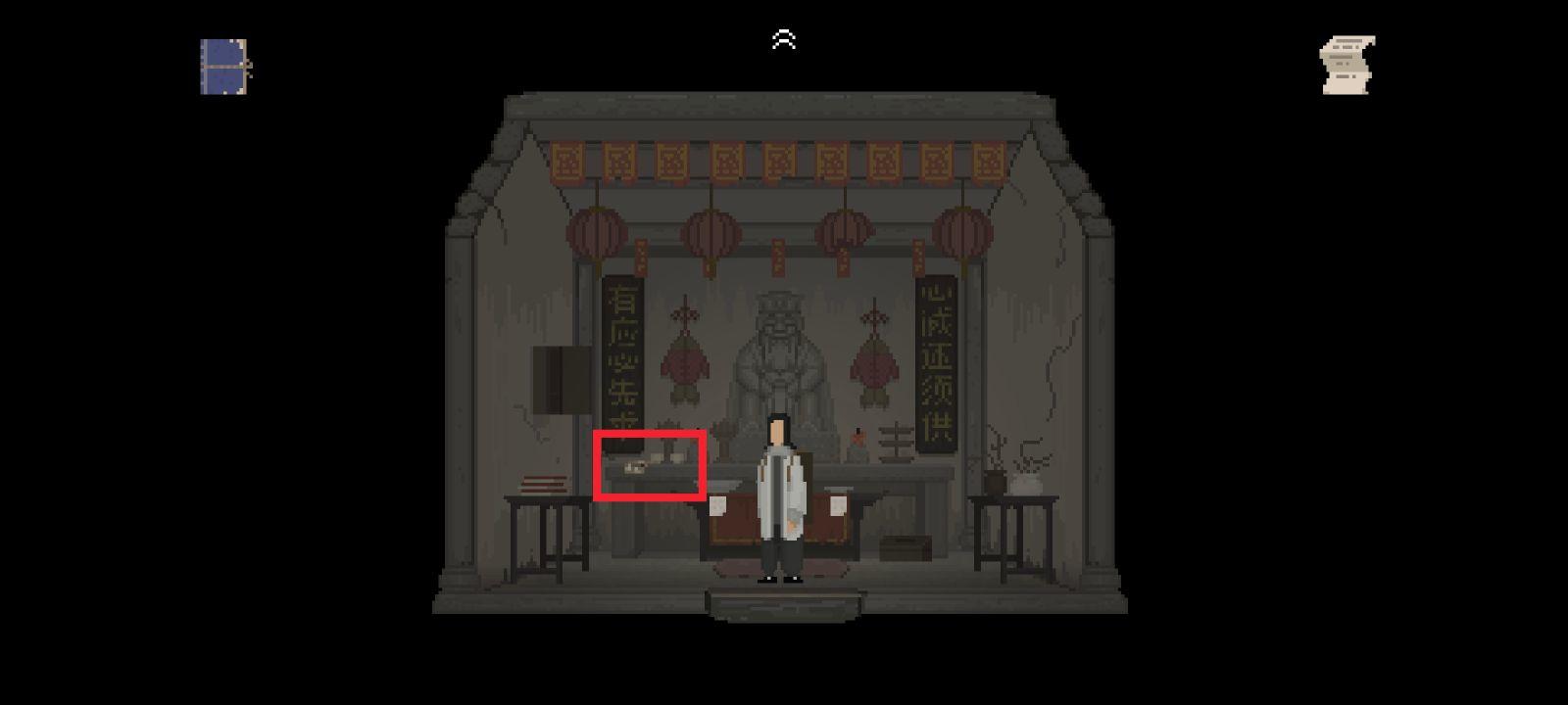 进入土地祠 打开左侧墙壁上的柜子 拾取“纸元宝”