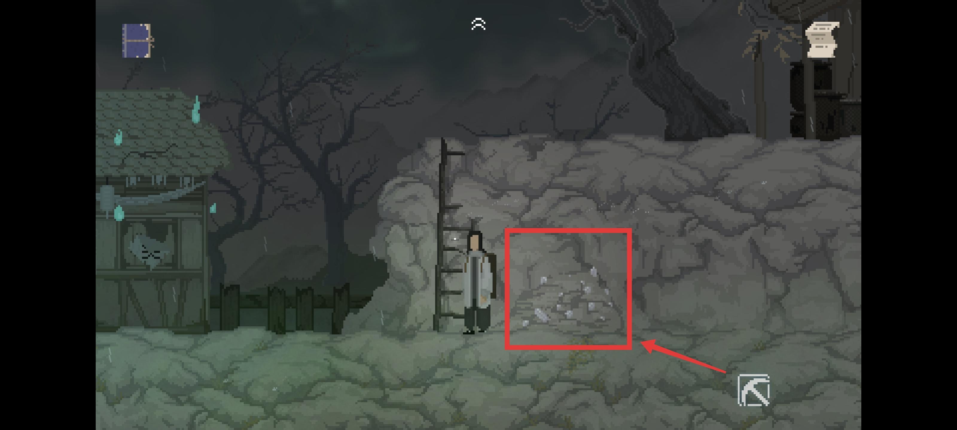 用“铁镐”凿开阶梯的冰 前往岳老六的家(茶水摊左边的屋子)