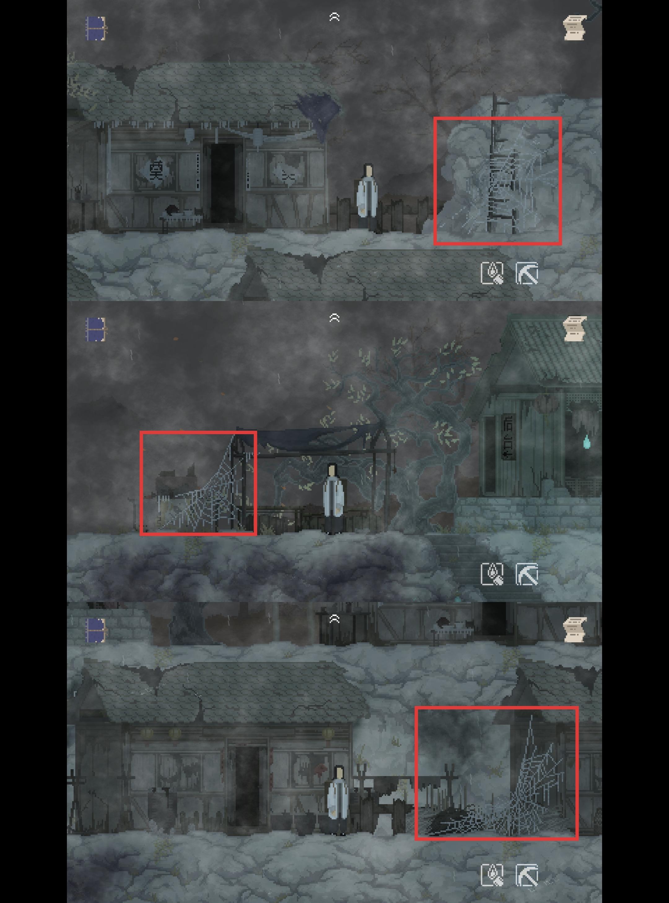 离开茶水摊 用“火药”和“火折子”消灭挡路的蜘蛛
