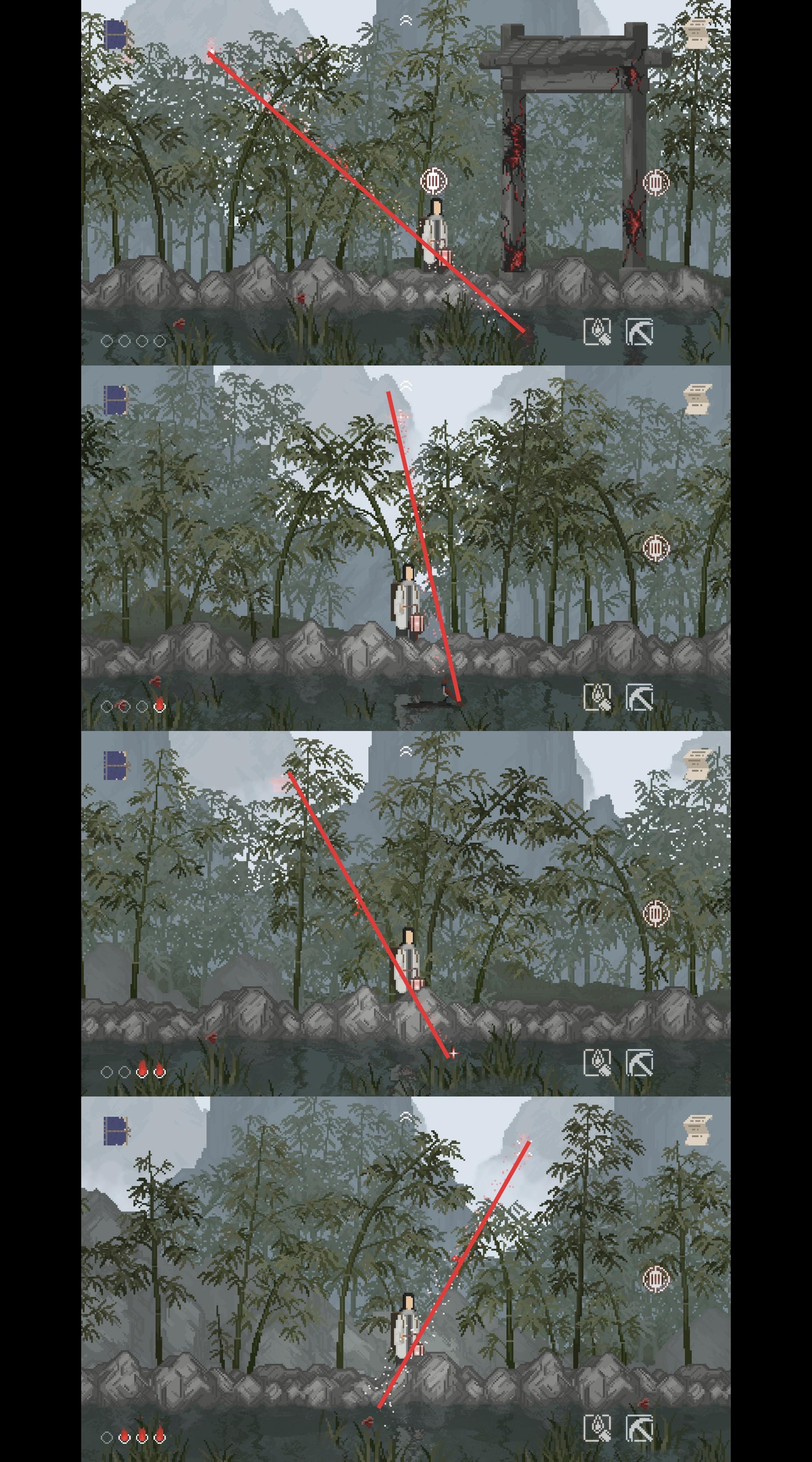 根据提示 找到灯笼的亮光与其他事物连成的直线 进入山门