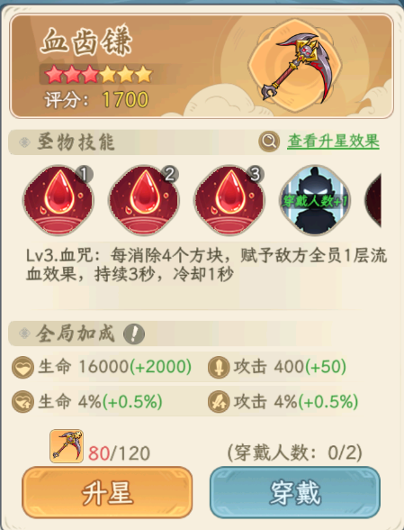 下面两个圣物搭配域神可以打出很强的效果,卡在799关的小伙伴可以试试用刑天携带这两圣物来削减干戈的血量,再由第二个人物补刀击杀