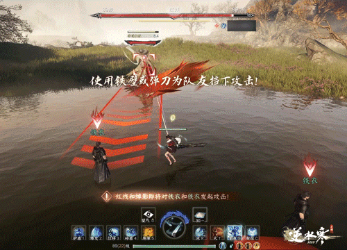 在红线和绰影命中前,御铁衣和镇海沧澜可使用金刚铁壁或弹刀,为其中一位玩家抵挡住本次招式。